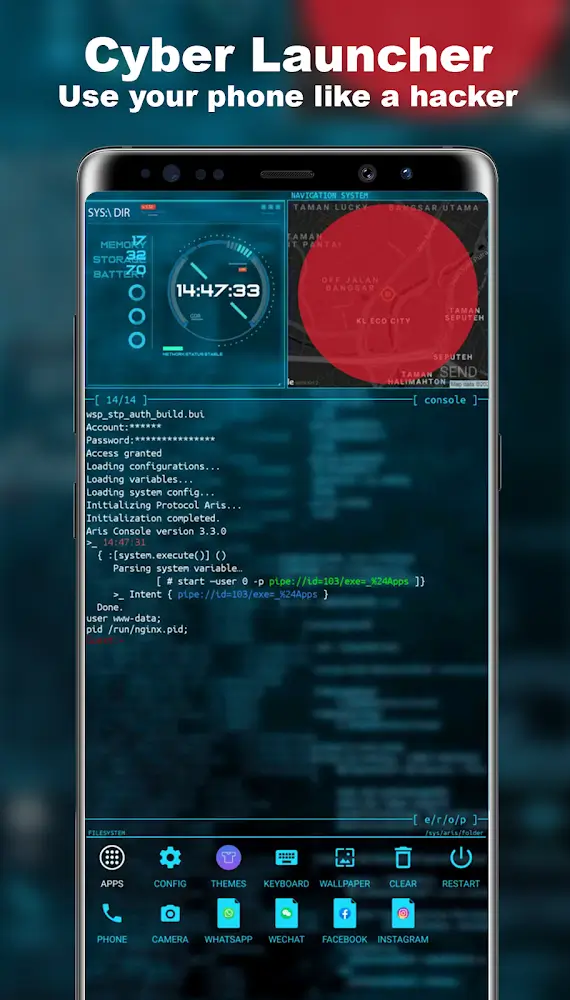 Cyber Launcher Mod Apk to change their interface in the style of Cyberpunk 2077, which is really new, unique, and very personal.CHANGE THE MAIN INTERFACE OF THE DEVICEFor special fans of Cyberpunk 2077, the chances are that you’ve wished to be able to use your device in such a truly modern style. Now your wishes will be able to come true very quickly, th