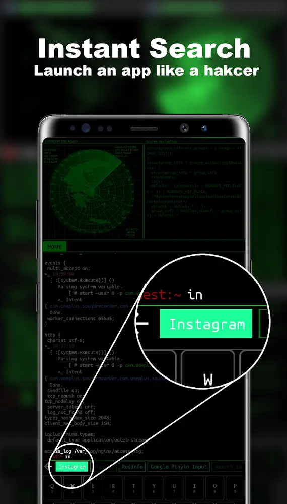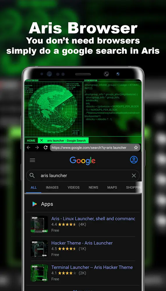 Cyber Launcher apk-en que operations. With the application, your usual actions, such as searching for applications or contacts in your contacts, will be changed in the extremely familiar Cyberpunk 2077 style. Not only that, but the application will also allow users to use Aris as a regular Launcher with the App Drawer just by swiping up on the home screen.