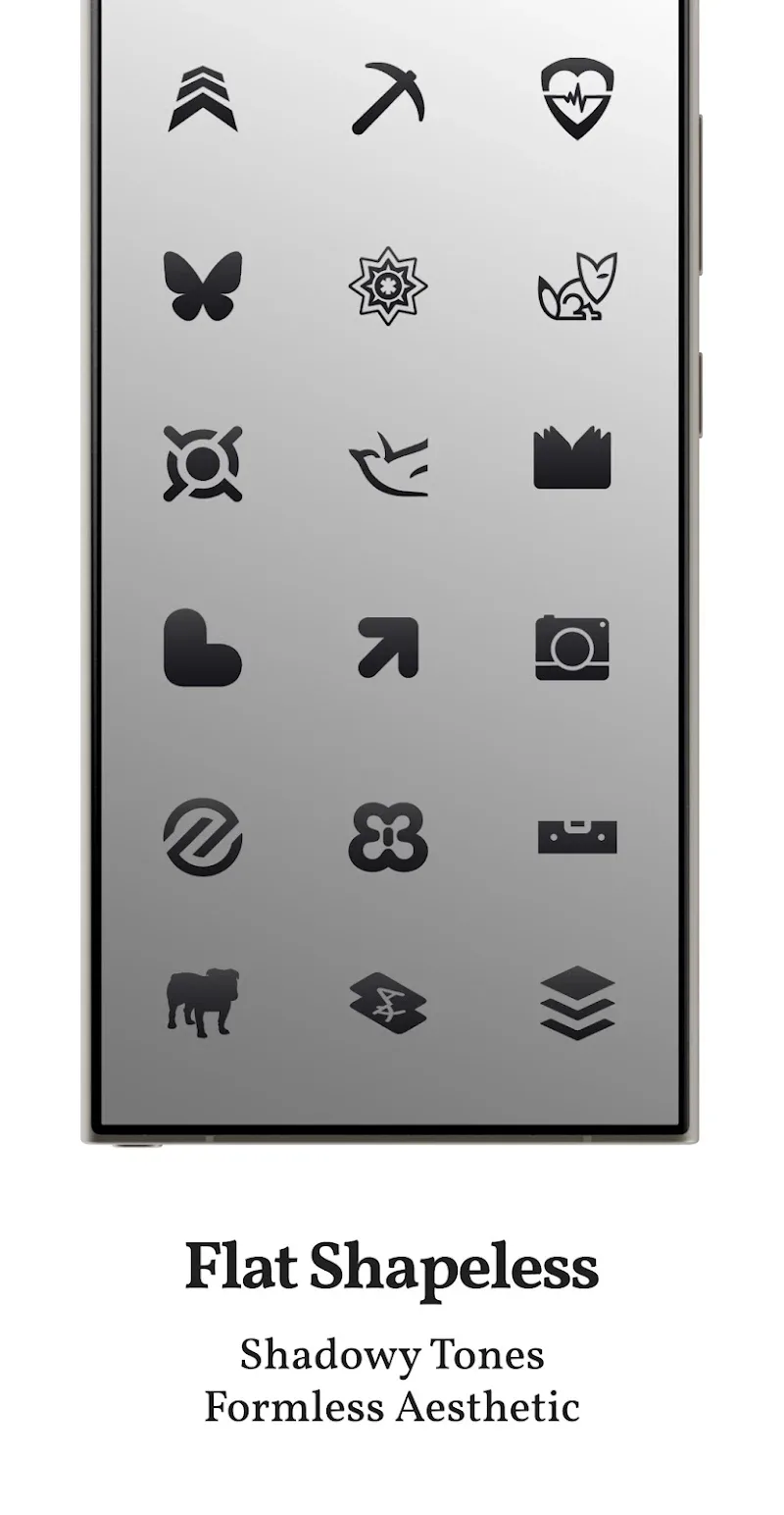 Dark Shapeless Icon Pack provides unique icons with a mysterious and special dark style. Users can explore a new style with high aesthetics. Some themed wallpaper patterns are also widely shared and used. Users have more choices to change the device interface when using the application.MINIMALIST DARK DESIGNInstalling this application gives users more choices when they want to replace the old icon system. The dark style icon pack will be launched to users. The mystery brings its appeal when it appears on the user’s device. Each icon is a product of creativity and innovation in style.Sleek modern look: Each icon has its appeal when placed in the general interface of the device. Icons that do not appear in the list will be quickly covered with an overlay. Users can be satisfied with the sleek look and ultra-modern style that the icon pack possesses.Mysterious edgy vibe: Special icons are applied synchronously in the device. Users can adjust them in bulk to avoid any discrepancy. The icon pack will contribute to shaping the mysterious style that users are pursuing.Unique moody aesthetic: The icon pack has a dark, mysterious, and attractive style. Users will feel the appeal of each of these abstract icon patterns. Not only creating mystery for the collection, these icons also bring a new style of icon design.EXTENSIVE CUSTOMIZATION OPTIONSMany new and unique icon patterns will be provided by the application. In addition, users can also use wallpaper patterns with attractive illustrations. Several dynamic calendar styles are also provided to replace the old layout. Users can completely change the look of their device when installing this application.Thousands of icons themed: The application shares more than 25,000 unique icon templates for users to use. The design process is inspired by dark things and gloomy styles. Each icon is designed with its own ideas that are quite abstract and difficult to imagine. Users can use icon templates with many different themes to suit their devices.Exclusive matching wallpapers: The application provides many unique wallpaper templates for users to use. Each wallpaper will represent a theme, creating diversity and difference. The simple design style creates its appeal and makes the collection more impressive to users.Dynamic calendars support: Several dynamic calendar templates that match the general space in the device will be introduced. Users can refer to many different layouts in the templates shared by the application. Each dynamic calendar template will match an interface layout style that the user requires.