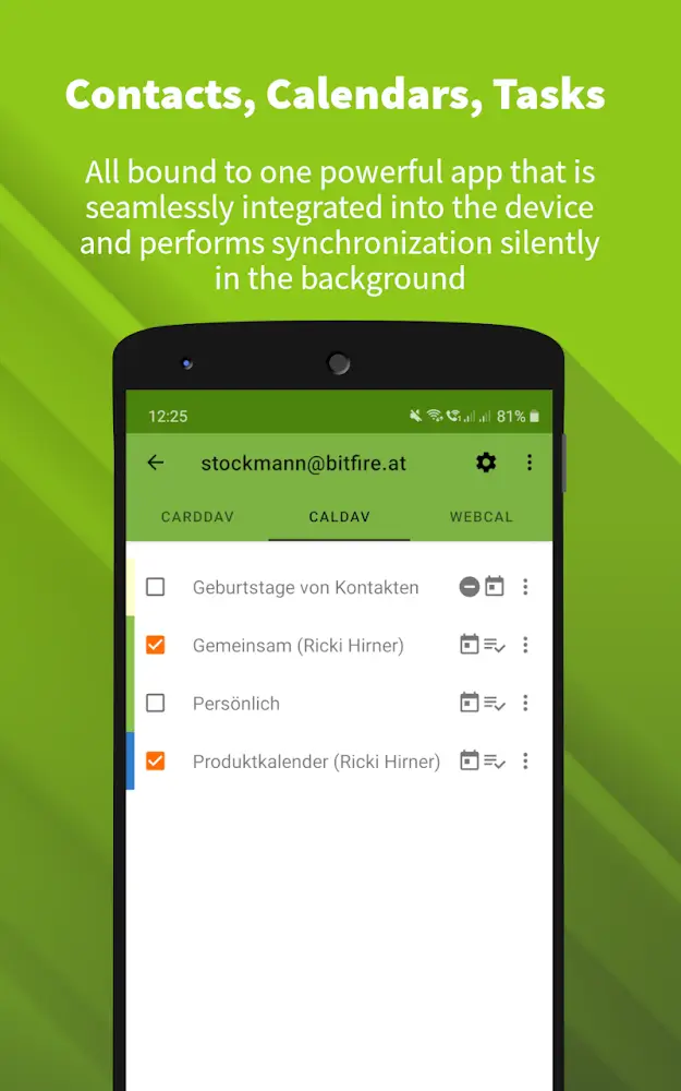 DAVx⁵ is known as one of the top intelligent sync apps ever. With us, you can sync many features to other third-party apps, and it can be from the appearance of contacts to the lich. Not stopping there, this application also allows you to perform many smart tasks that allow you to sync more efficiently than ever. Not only that but it is also known for being extremely easy to use and perfectly integrated. Because of those unique features, it deserves the trust of millions of users around the globe.IMMERSE YOURSELF IN THE SMART CALENDAR SYNC FEATUREFirst of all, when it comes to this application, how can you not mention the most outstanding feature, calendar synchronization. This feature is also called simply CalDAV. With us, you can now integrate and use various calendar apps. However, your personal information is not lost when this application allows you to sync them. What’s better than when you can synchronize data quickly and neatly.FAVORITE ADDRESSES AND JOBS ARE FAVORED OBJECTS TO BE DISCOVEREDNot stopping there, with just this single application, users can synchronize many other related features. Specifically, I want to mention the address book, otherwise known as CardDAV, even though the work is synchronized. This app adds a feature to help you sync up to two-way for those of you who don’t know. If other applications only allow you to sync from the server to another machine, with it, nothing is impossible.QUICKLY PERFORM ALL REMOTE OPERATIONSEspecially with the current digital technology era, controlling everything and all actions remotely is no longer strange. We’ve also quickly enabled you to perform WebDAV accesses through our highly responsive and flexible remote control system. Specifically, this feature opens the door to a seamless system. Even though you’re doing it on two different devices, everything you feel seems to be on one device.SIMPLE, FAST TO USEEnd, what DAVx⁵ attracts millions of users to this world is the fact that you can set everything up with great ease. Almost every parameter in this application is automatically detected and synchronized without taking a long time. We’re even more dedicated to helping you support signing certificates as well as smart client application certificates. Not stopping there, this application also gives you high-speed algorithms that bring incredibly high performance. That can be CTag /ETag to multi-threaded syncs. There’s nothing better than performing multiple functions with a single app.