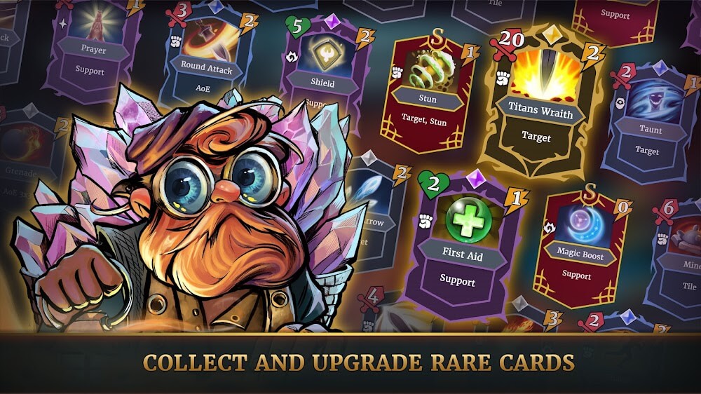 Demon Dungeons Premium with piercing attacks, round claves, or find cards like the earthquake and become legendary in this game.Ranged Combat: You can use cards like a fireball, magic arrow, and the lighting spear to attack the enemies.Space Control: Plenty of traps are available and impede enemy movement and control the battlefield with the help of these cards like – Bomb, Mine, Stun, and the Taunt.Here you can choose your tactics, collect and upgrade rare cards, and find and destroy