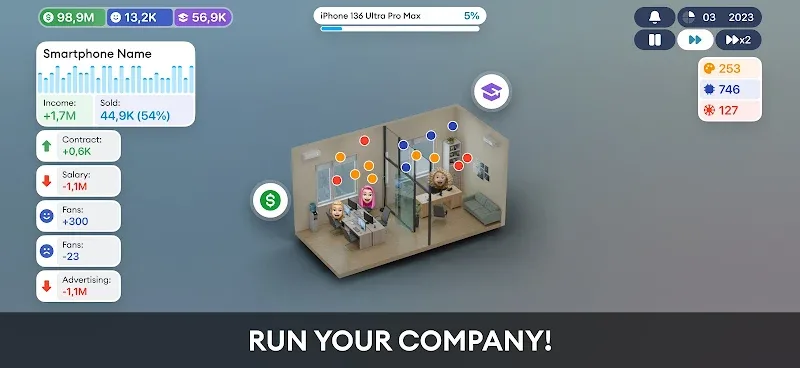 As a founder, players will have to find a way to run their company well. Many projects will be completed excellently by players through hard work in recruiting and training employees. Many areas will be focused on and developed by players in Devices Company Tycoon Inc.DEVICE CUSTOMIZATION POWERThe journey to becoming a technology company founder will not be easy. Players will have to find a way to control all operations of the company and check the project every day. They can develop interesting projects that they are interested in. Many areas will be focused on by players and spend a lot of time researching.Total Control: The proces