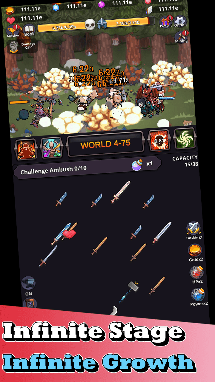 Devil Smithy Epic Idle Merge apk-en stage has a final boss you must defeat to move on to the next stage. It is difficult to defeat due to its superior intellect and physical strength. If you fail, your helpless followers will be left waiting for you to rescue them. Let’s do our best to destroy these monsters. They are overcoming many difficulties to reclaim what the demons have stolen. The Devil Smithy fights explosive battles through difficult levels to save humanity.