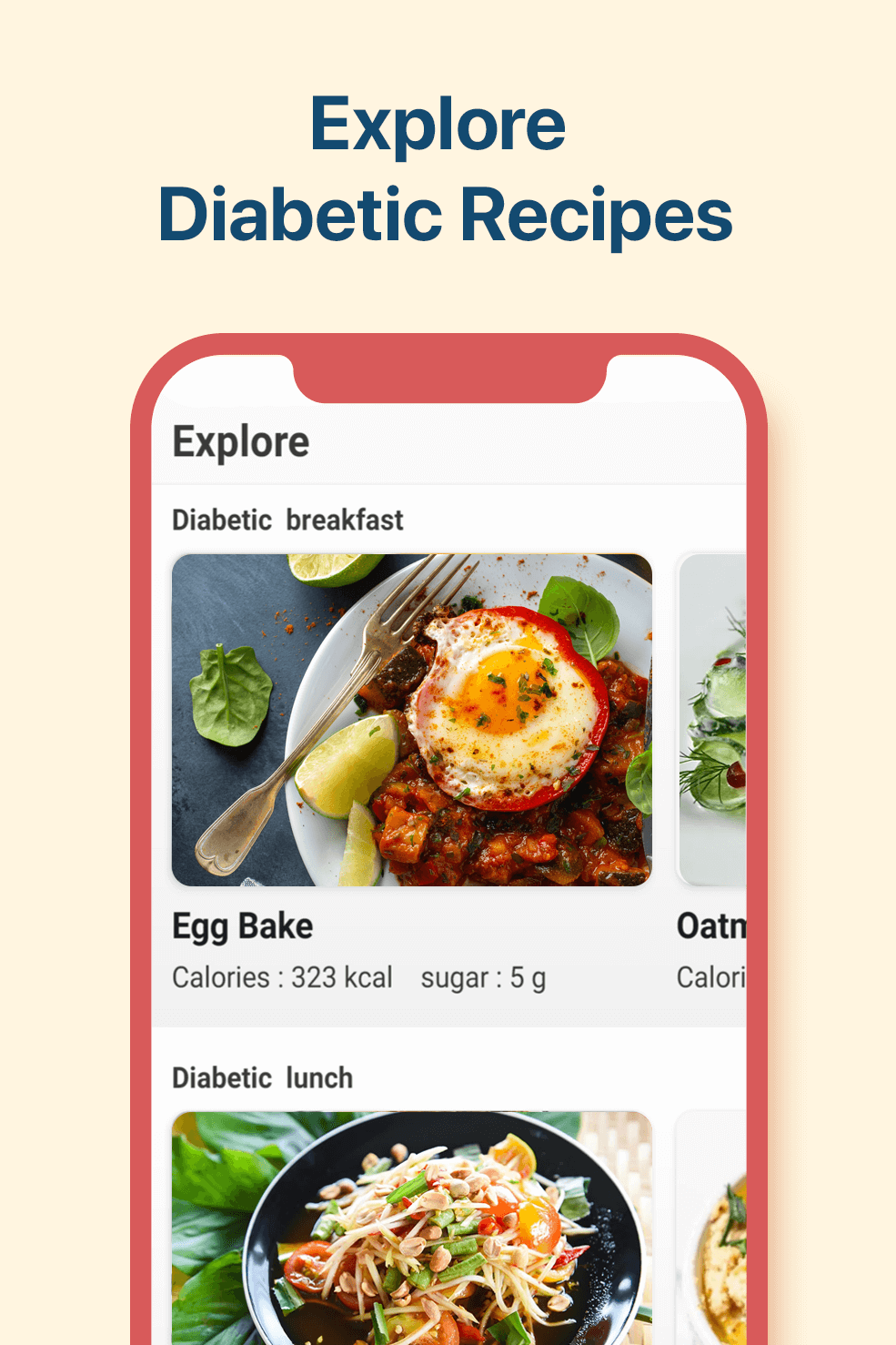 Diabetic Recipes App Premium ics’ pancreatic insulin levels, which are typically rather low. Our Diabetic Recipes app can help you maintain control of your diabetes by guiding you through preparing meals that are high in nutrients. Whole grains, fruits, vegetables, high-fiber meals, fish, and healthy fats should all be included in a diabetic diet.SIMPLE MEAL PERSONALIZATIONAnd to help its users make the best use of their diets, a complete eating plan is essential. Diabetic Recipes app will allow its users to crea