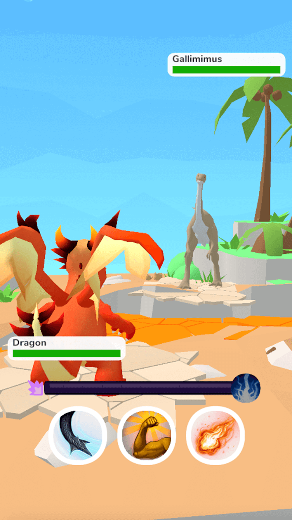 Dnadino apk-en d by the system. The battle will take place under your control. Basic attack moves will be displayed on the screen for players, and a power meter specific to these moves is also used. Both warriors are updated with live health for players to observe easily. When using the right to replenish health, you have an extra respawn turn to continue the match. Winners will be rewarded with coins to develop research work further. You will own a huge collection of dinosaurs after participating in this mission.