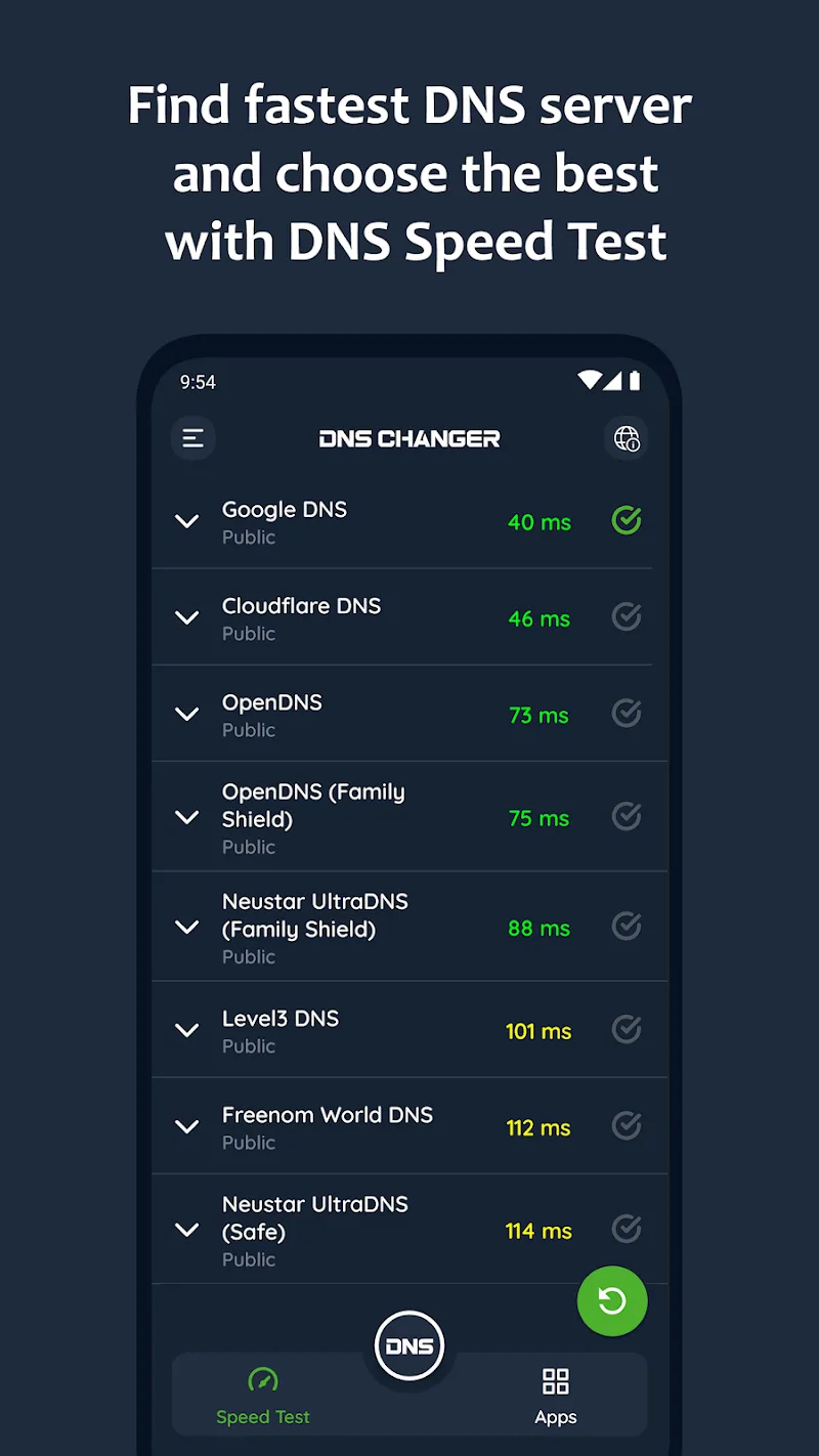 Dns Changer Ipv4 Ipv6 Mod Apk ces.Fastest Server Speedtest: The application completes the connection process with the new DNS server. Users will experience stronger Internet services. The servers will be listed in a common list for users to easily track and choose. Servers with stable connections will provide better service to users.Improved Gaming Experience: Users’ gaming experience is significantly upgraded. The application brings its advantages to users during the process of starting and accessing games. Entertainment activities are fully supported with faster connection speeds.Optimized Data Routes: The application will work with Mobile Network Data or WiFi, depending on user