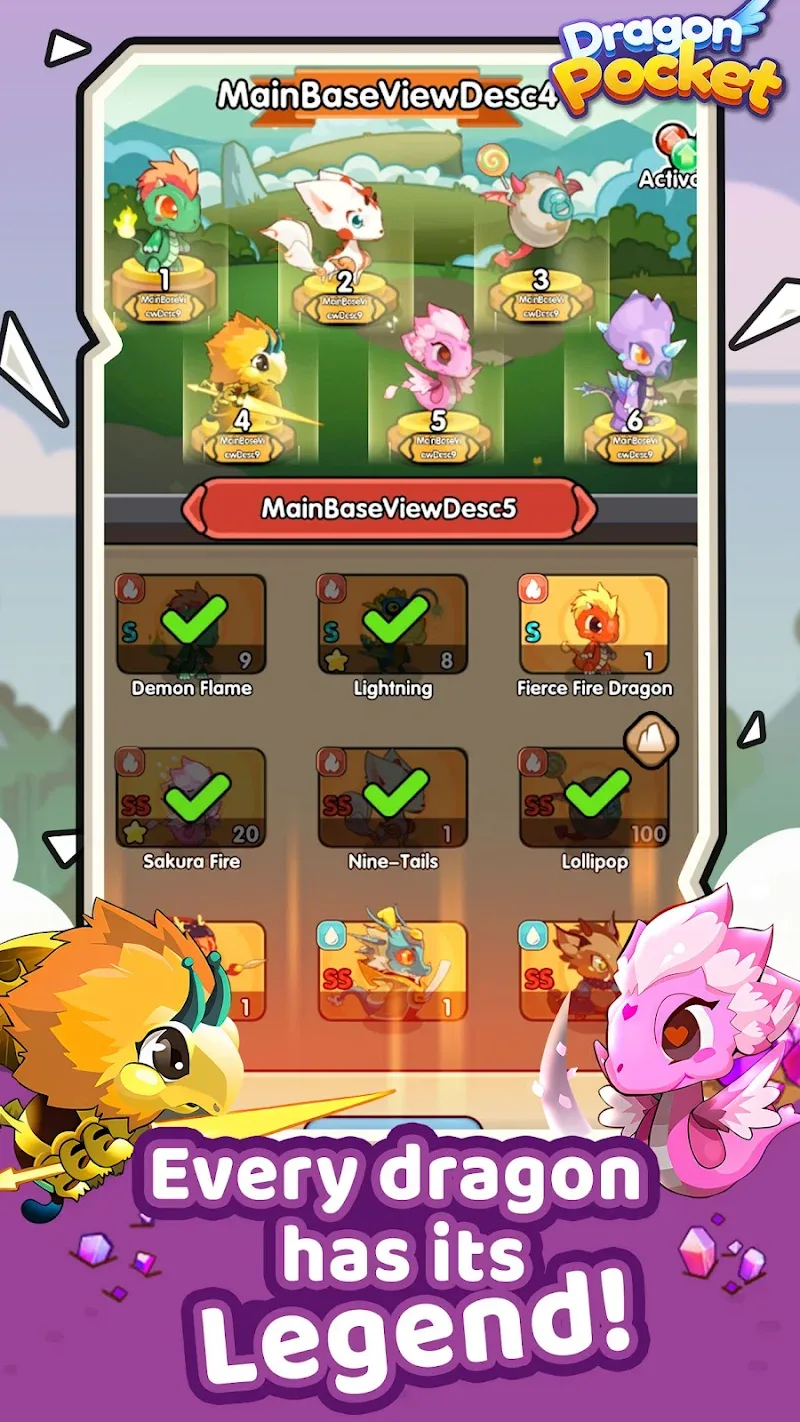 Dragon Pocket apk-en s to choose from.Adorable Companions: Each dragon has a different and cute appearance and also has its own unique strength and fighting skills. Dragons are categorized into Earth, Water, Fire, and Air groups. Select the dragon that suits your play style and strategy to enjoy the most fascinating battles.Powerful Evolution: You can watch the growth and evolution of the dragon you have raised. This game will make you feel very happy as you see the baby you are taking care of grow into a very powerful and majestic warrior.