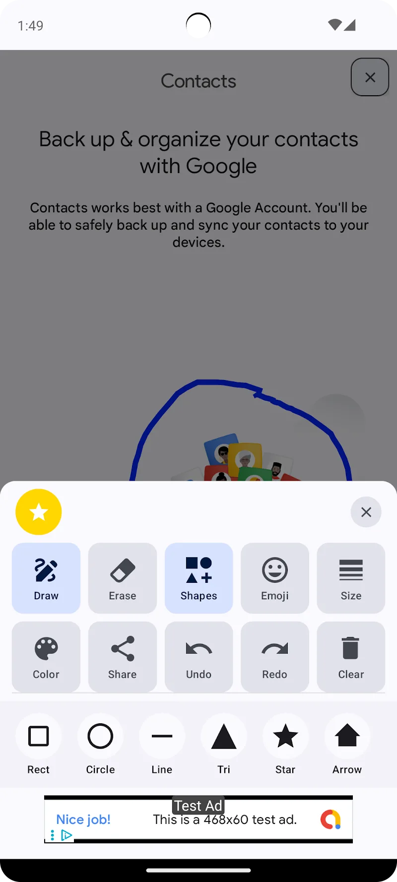 Draw Anywhere will make your device more convenient and smarter. The application allows you to draw freely on your screen without any limitations. With this feature, you can draw and write anything on your device’s screen. With this application, you can use it as both an entertainment tool and a note-taking tool. What are you waiting for? Come and experience this exciting convenience now!SCREEN DRAWING MADE EASYWith this application, you can draw freely without any limitations or difficulties. It provides you with an extremely attractive and enjoyable user experience.Floating Icon Access: For quick access, simply tap the floating icon on the screen. No need to access the home screen to access the application. This saves you time.One Tap Start: To use the application easily. Simply tap the app icon to use it without complicated steps. This allows for quick and easy access.Precision Drawing Tools: This app provides a set of highly precise drawing tools. With these tools, you can quickly and easily draw using gestures without needing any additional tools.INSTANT SHARING & MODERN DESIGNThis app allows you to quickly share any content you want with any contact without needing any supporting tools or applications. This makes sharing quick and convenient.Instant Share Capture: With this app, you can capture photos and share them instantly. You don’t need to access your photo album and select a contact to share with. This provides a smart and convenient user experience.Emoji Creative Expression: In this game, you can also create your own emojis. This gives you extremely unique and outstanding emojis that only you have, making it incredibly enjoyable to use in conversations.Privacy First Design: The application also provides you with a highly professional and robust protection system. This system will protect your privacy every second of every minute, so you can use it safely without worrying about anything.