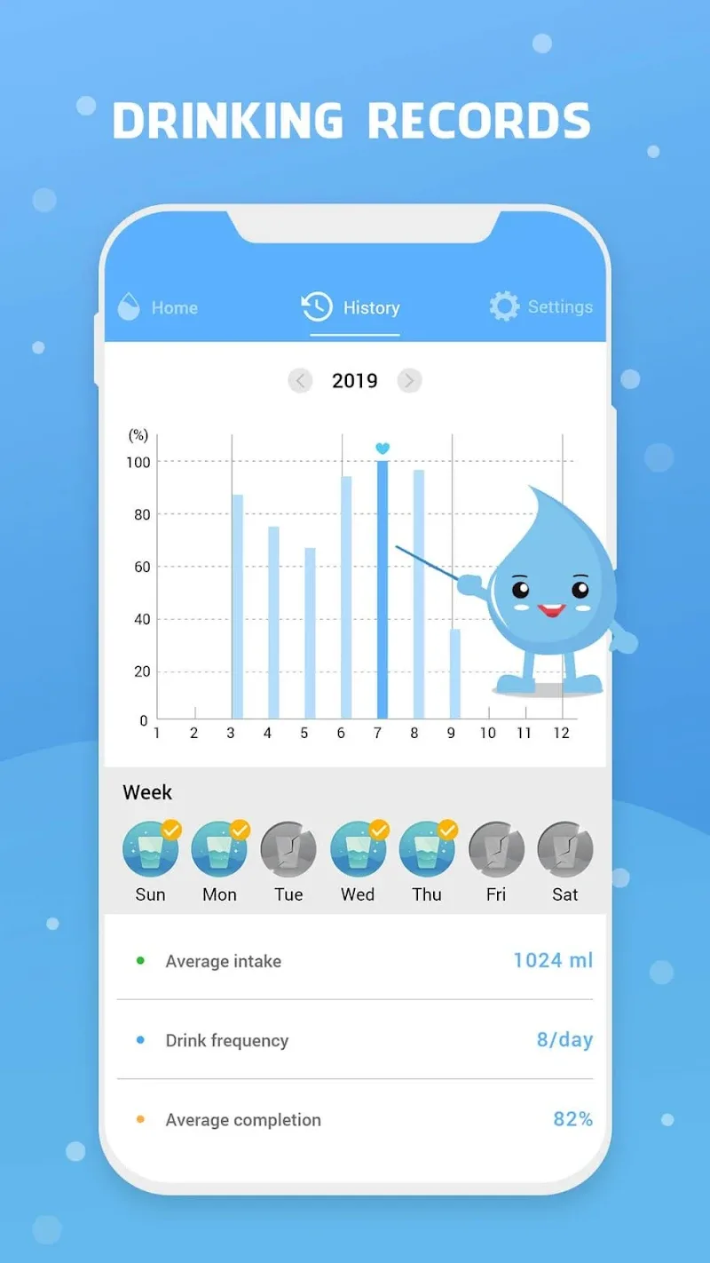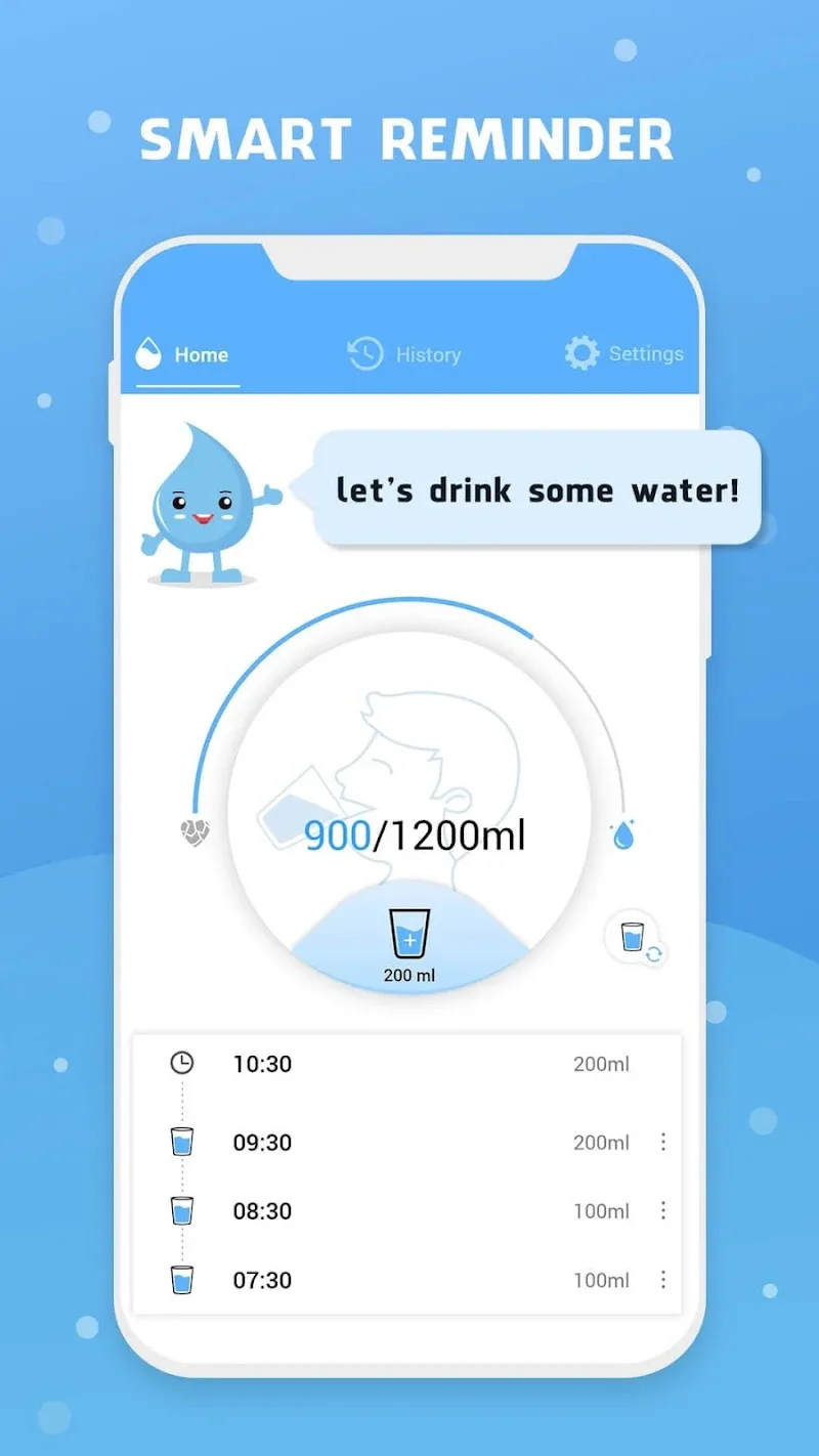 Drink Water Reminder MOD APK – Health app tracking daily water intake with customizable alerts.If you are looking for an application that can help you track the amount of water you consume each day or even help you get enough water, the Water Reminder – Remind Drink application will be a good choice. I guarantee that you will have a clear change in the most positive way after using this application.SMART REMINDER SYSTEMGaining the trust of users thanks to the smart reminder system, helping you always remember to drink water on time. The application will automatically send notifications to you at certain times of the day based on the default settings or you can also adjust it yourself to be reasonable.Customizable reminder intervals: This application cannot create an effective water drinking schedule and to do that, you will need to set your own water drinking reminder.Sleep-friendly bedtime mode: This app is also very smart when it recognizes that the user is going to bed and it should not bother them with water drinking notifications at that time.Activity-based adaptive reminders: Another smart thing about this app is that it will rely on your daily activities to give you more timely notifications.COMPREHENSIVE WATER TRACKINGNot just a reminder app, it also plays the role of measuring the amount of water your body has consumed in a day and shows it in detail, intuitively through statistical charts so that you can easily recognize the times when you often forget to drink water and adjust your habits accordingly.Personalized intake goals: Before using the app, you will need to enter necessary information such as your gender and weight so that the app can give you an effective water drinking schedule.Visual consumption representation: With the data you continuously enter, this application will also give you a table analyzing the amount of water consumed and it can also be shown through the image of the human body for users to understand more easily.Detailed progress charts: This application not only tracks the amount of water intake and consumption of users by day but it also saves that data for analysis by week or even by month.