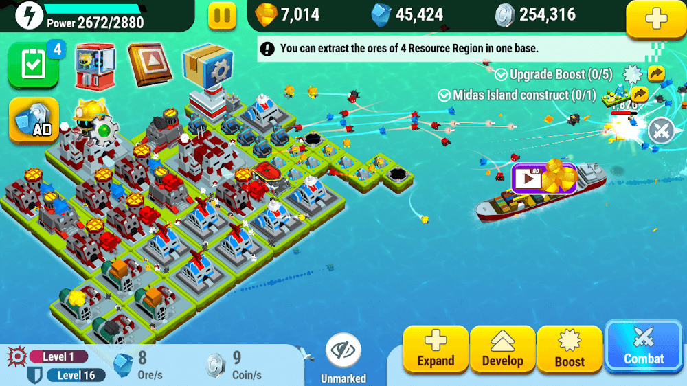 Drone Battle apk-en players to collect and further develop drones by combining similar drones. Not only do players have the ability to merge drones, but islands can also be merged to create a large and powerful island system to be able to fight. After you have finished building yourself an island and a powerful enough drone system, this will be the time when you can participate in battles and show your strength. Players will be able to feel a sense of joy when they can defeat their opponents in turn and reach the final throne easily.