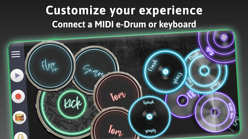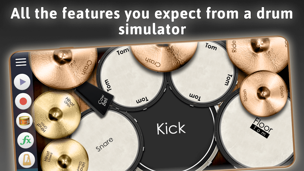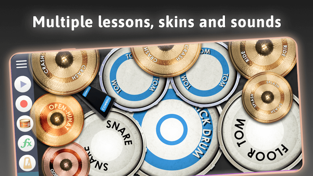 Drum Solo Studio Premium mmer with the unique experience of playing drumming and music with this multitouch acoustic drum kit simulator. You can play this with your fingers as if they were drumsticks on your mobile phone or tab. This drum set game has a fast response and is free for everyone, and it includes different sound bank sets recorded with the best studio quality. You have the option of recording your songs and showing those songs to your friends or family members.Drum Solo Studio app modifies for ev