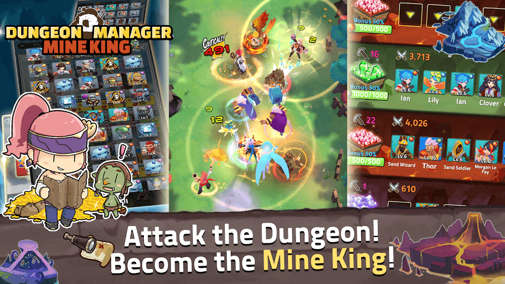 Dungeon Manager Mod Apk game is a fight against the cruel and dangerous monster in the dungeons. You have to defeat those monsters to get overhead over them. There are numerous dungeons to master. At each level, you will be getting harder and harder to conquer. Dungeon Manager: my King is an endless journey where enemies are countless. Your strategies must be sharp. Collect the gold coins and ruby gems after completing each level. As it becomes more challenging and complex, you can ask for help from the he