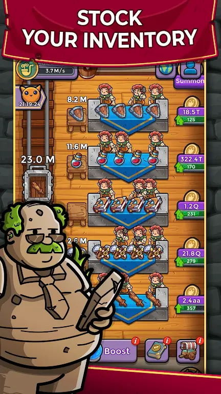 Dungeon Shop Tycoon apk-en ction, you’re not just a shopkeeper but an artisan, crafting the finest wares for your customers.RENOVATIONS, EVENTS, AND DAILY REWARDS – ENHANCING THE GAMING EXPERIENCEThe game boasts an exciting feature that lets you renovate your shops. Investing in these renovations boosts your income and draws in more significant customers. And if that’s not enough, Dungeon Shop Tycoon also treats you to Limited-Time Events and Tournaments, adding a competitive edge to the game. For those consistent players, there’s a daily check-in reward system, ensuring your commitment to the game is always handsomely rewarded.Join the ranks of Arpeegia’s successful entrepreneurs today and start your journey as a Dungeon Shop Tycoon!