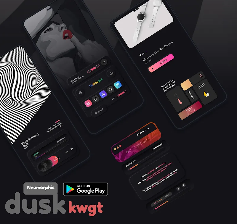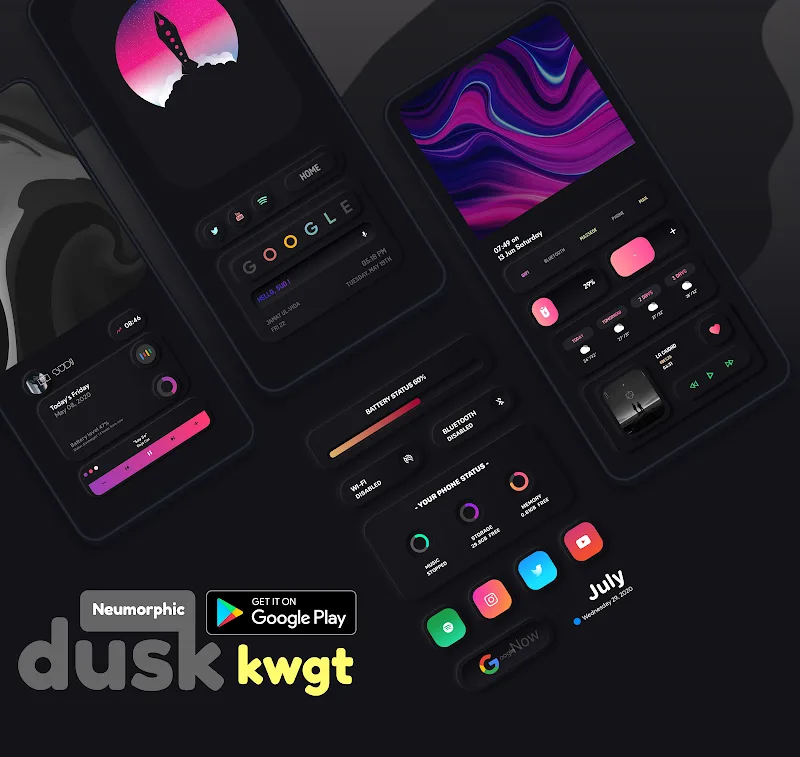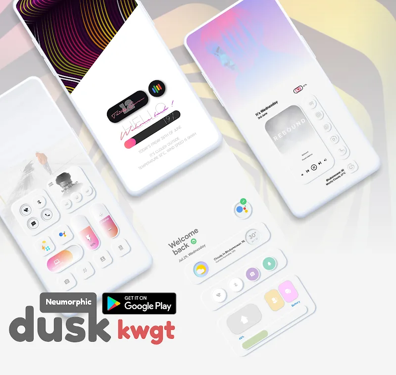 Dusk KWGT provides you with a series of uniquely designed widget packs to bring a distinctive style to your device. At the same time, the widget templates will be modern, bringing a luxurious and sophisticated feel to your device. Users are free to choose the appropriate color tone or minimalist to have a new way of using it than ever.STUNNING NEUMORPHISM DESIGNThe application encourages you to choose custom packages to refresh your device. The operation will be very simple, and just a touch