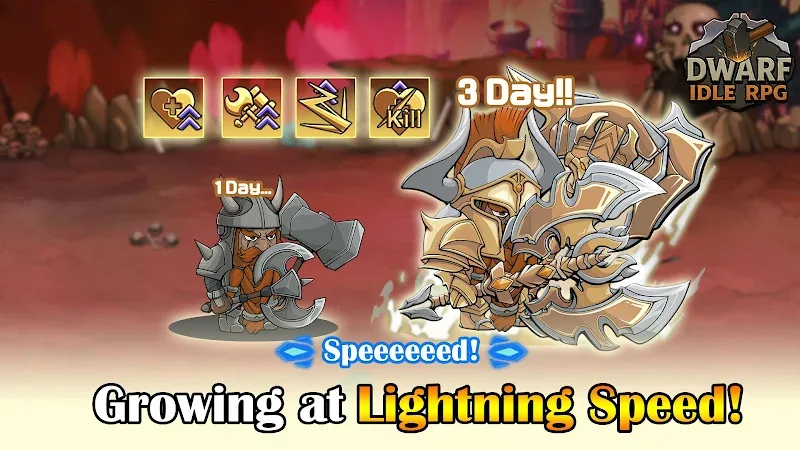 A warrior’s journey to conquer the arena will go through many stages. Players can accompany their favorite warriors on their journey to conquer Dwarf Idle RPG. Each match is a time to practice and learn the players’ skills. They can freely forge weapons and create their unique combat strategies.SKILL CUSTOMIZATIONThe skill set used by players in the arena is their upgraded personal skill set. Combining powerful combat skills and highly strategic gameplay, players will achieve the best results. They can customize their fighting style and become masters in the arena.Upgrade Favorite Skills: The character’s skill set will be upg