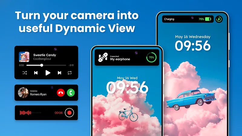 Dynamic View AZ has the mission of controlling settings and increasing efficiency when using these features. The application brings you a series of interesting additional features such as calls, clocks, music players, etc. The application always sets the fast processing mode for necessary settings and the efficiency of use is always guaranteed for the user experience.DYNAMIC NOTIFICATIONSThe application offers a series of new interfaces for your device. Featured wallpapers are provided; you can also freely download photos from the coll