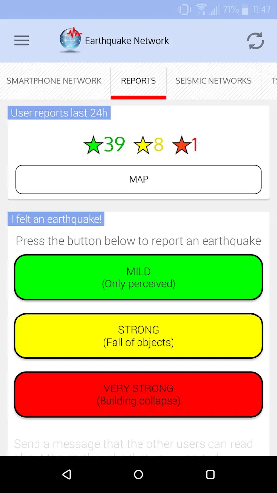 Earthquake Network Pro Mod Apk e appropriate measures to minimize damage. Through the study of this Earthquake Network, you will be able to predict the locations of earthquake preparation and occurrence and give early warnings to people through the system of mobile devices.STATISTICS RELATED TO EARTHQUAKESYour smartphone lets you detect earthquakes in the most realistic and accurate time. Not only that, users will receive instant alerts when this app detects new earthquakes. The earthquake data will be updated continuously for you. Your smartphone can detect earthquakes also, thanks to the accelerometer on each device. Information about earthquakes that have not been confirmed accurately will be widely disseminated to the people so that they know
