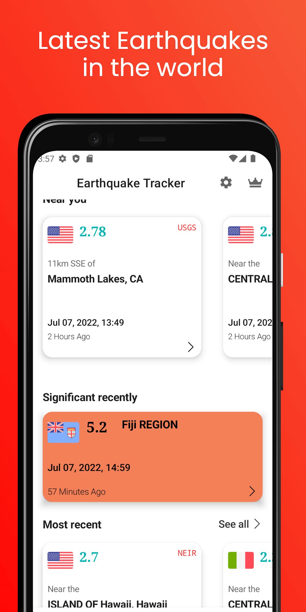 The Earthquake Mod APK app displays recent US and global earthquakes. An earthquake tracking app can notify you immediately. So, every smartphone needs it!Earthquake App fetches data from various reliable sources and informs users about earthquakes worldwide with detailed information and statistic. That helps users see all the dangers or damage done by the earthquake within the required time for every detail. Thus, the app is helpful and can assist anyone in watching out for earthquakes in nearby locations.WATCH FOR EARTHQUAKES WORLDWIDE WITH SIMPLE VIEWSYou will be able to watch the most recent earthquakes that have taken place in the United States and elsewhere in the world if you use the app’s database or report in real-time. The application can send you a notification as quickly as it can following the occurrence of an earthquake. As a result, it is an application that should be standard on all contemporary mobile devices and keep everyone safe from harm done by earthquake damage and its influence on the surrounding.CHECK FOR ANY RECENT EARTHQUAKES STATISTICSThe “Featured” section includes a variety of highlights, some of the most notable of which include the most recent tremors in your location, the greatest earthquakes that have occurred, and information about recent earthquakes. Everything will be accounted for in detail, and you can expand or lessen how you want to check the information while keeping up with everything within the app. Besides, you can check for related news of the recent earthquakes for more reports from the local or onsight victims.VIEW THE WORLD MAP FOR PRECISE EARTHQUAKE LOCATIONSThe app features a 3D world map with different view modes so you can watch the recent earthquake locations thanks to the database provided by reliable sources. Besides, suppose you mark any locations on the map. In that case, the app will send a notification for any earthquakes happening in that specific area, or you can catch new information from the app for any new earthquake. That makes the app special and crucial for anyone habiting nearby any center of an earthquake.