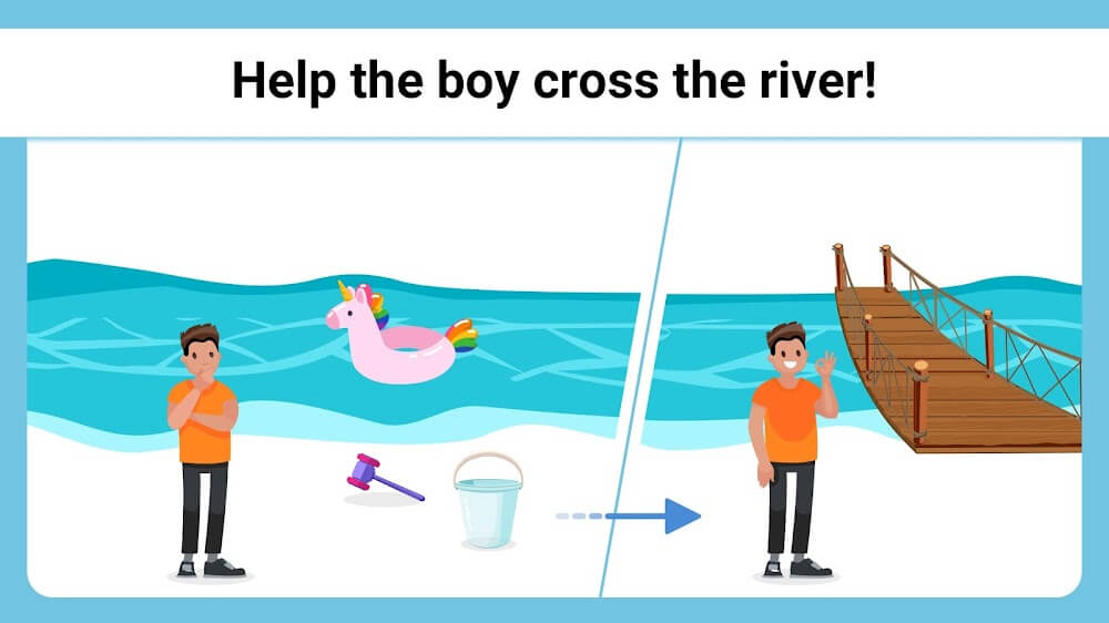 Easy Game Brain Test Mod Apk we have to solve puzzles to collect more coins. We have to complete everything and prepare as a puzzle-solved tycoon. This Game has a settings bar, tips, level numbers, etc. We can use the information to solve puzzles. We have to solve puzzles like helping the boy cross the river, lifting the kettle, removing the piano, selecting the door to survive, etc. We must collect more rare coins to overcome more levels in this Game. This Ga