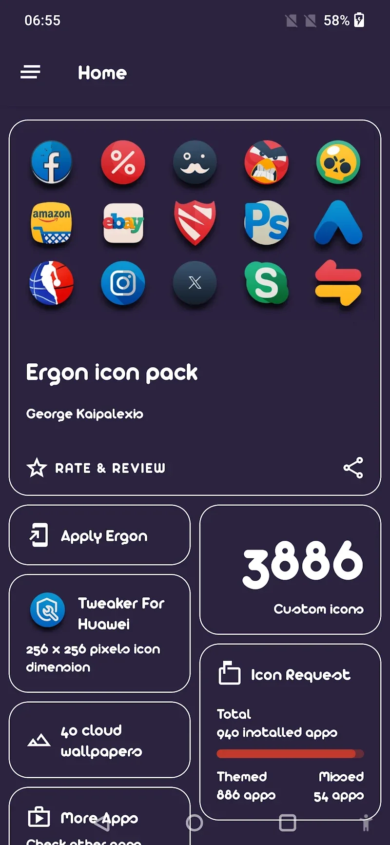 Ergon Icon Pack Premium the package. Users can create a mask layer to create uniformity for the entire interface.LAUNCHER COMPATIBILITY & DYNAMIC FEATURESUsers will have to use the launcher to launch the application’s features. Each device will have an additional dynamic calendar section to help them keep track of time. Some suitable wallpaper patterns are also shared by the application to help users create a harmonious space.Launcher support: Some launchers will help users launch the application’s features. In addition to launchers such as Action, Adw, AdwEX, and Apex, users can also refer to Atom, Aviate, and GO. Many other launchers, such a