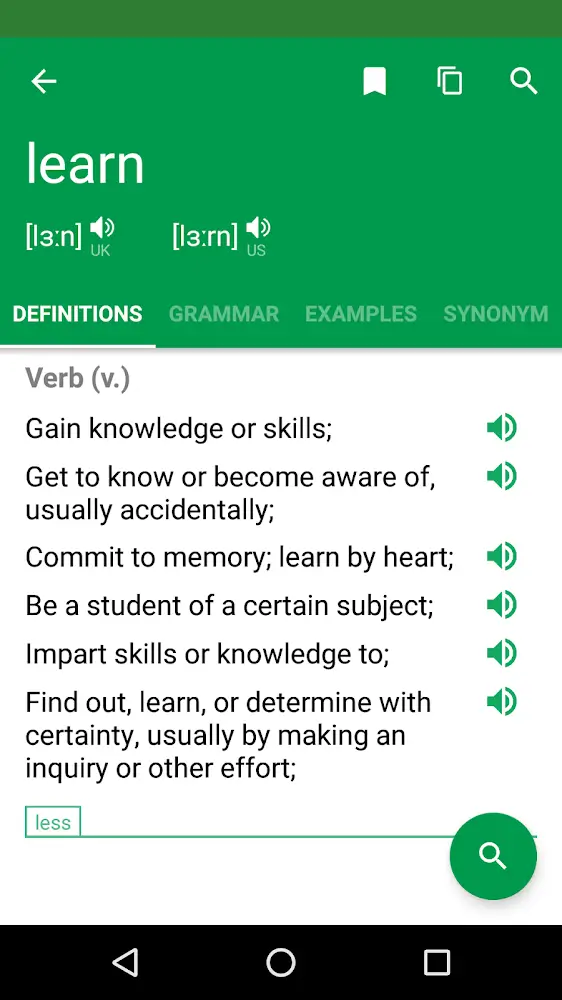 Dictionary apk-en e same time, the appearance of examples makes it easier than ever to remember how to use them.SMART AND USEFUL IDIOM FEATURESWith us, users are entirely confident when holding in their hands the phrases of basic idioms commonly used in daily life to idioms often used in writings and works. At the same time, we also allow you to use extremely smart bookmarking. Now you can search unlimited favorite history with this app. In addition, you can also perform an extremely optimized search system wipe or restore. At the same time, the text translation feature is also handy when you want to translate books and stories.