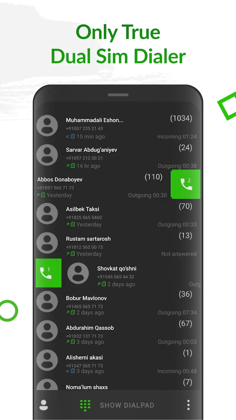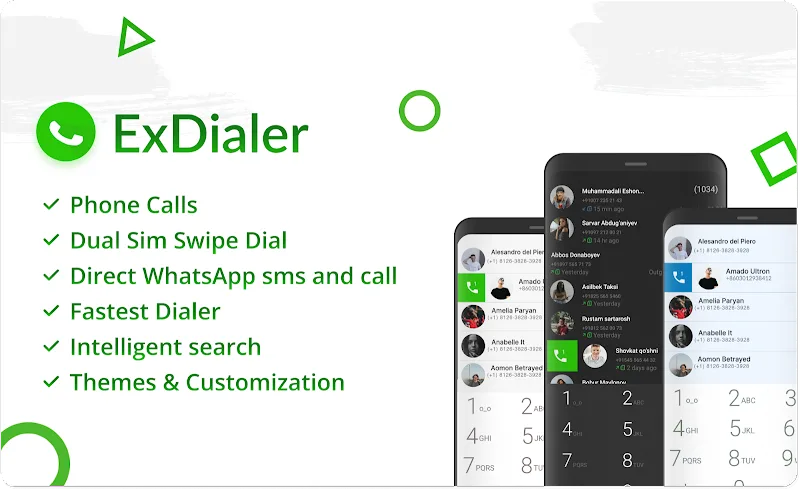 Exdialer Phone Call Dialer Mod Apk irect unsaved messaging, customizable swiping and intuitive interfaces, ExDialer optimizes mobile communication.DUAL SIM SUPPORT AND CUSTOMIZABLE SWIPE ACTIONSAt its core, ExDialer enables easy dual SIM dialing through customized swiping. Assign gestures like swipe left for SIM 1 and right for SIM 2. Swipe up for WhatsApp or down for SMS. Adapt swipes to quickly use your preferred apps. Simple directional controls streamline dialing and messaging.DIRECTLY MESSAGE UNSAVED NUM