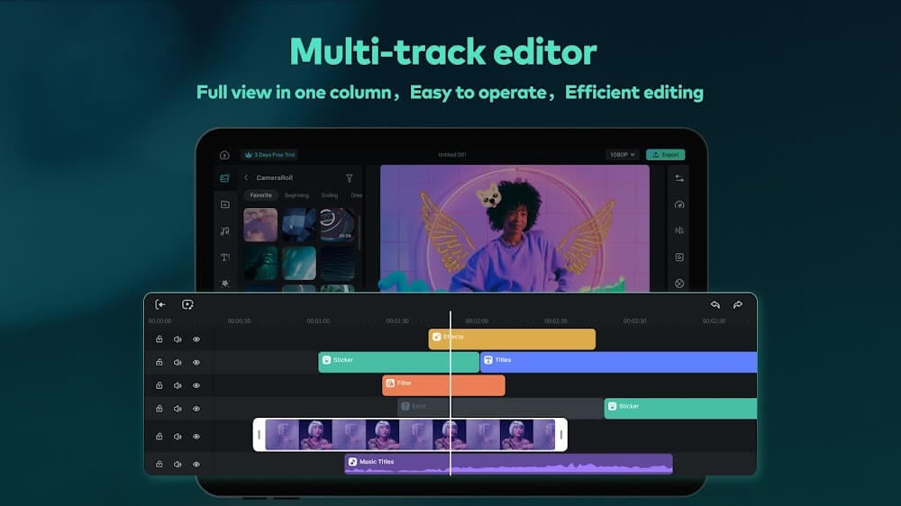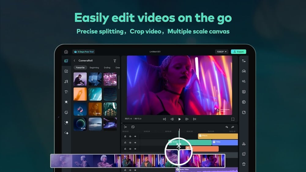 Filmora HD Mod APK makes quick, simple videos on the go. Choose a template and film! With many trendy templates, your project will look professional.FilmoraHD makes editing easier on different platforms that users can use and complete the product as soon as possible. Sharing it via the cloud is not too difficult for you, and you only need enough resource files; then, adding them to different layers will create the perfect content combination, but don’t forget to tweak them back. In addition, if you are a frequent user of social networks, the application will capture the current hot trends. This is the key for you to increase your account’s followers.POWERFUL EDITING TOOLSIf you need a powerful editing application that can help you work anywhere, the perfect choice is still FilmoraHD. This is an application that integrates the features that a content creator needs today to quickly make content more interesting. At the same time, a notable point when you use FilmoraHD is that you can edit right on your smar