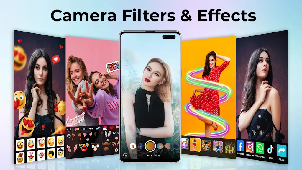 Camera Filters And Effects Mod Apk ing through the same old, same old filters, it’s time for an upgrade. Camera Filters and Effects promises not just any ordinary upgrade; it offers a sky-high elevation. With its robust range, you’re not just getting a filter; you’re getting a mood, a vibe, a story.SEE BEFORE YOU SNAPGone are the days when you clicked, then applied filters, and hoped for the best. This isn’t a ‘wait-and-see’ kind of app. This is the future. Swipe through a plethora of live camera filters, previewing in real-time, ensuring every click is precisely what you envisioned. And hey, with features rivalling even the likes of Snapchat, it’s like having a crystal ball for your photos.MORE THAN JUST FILTERS: WELCOME TO EFFECTSVILLE