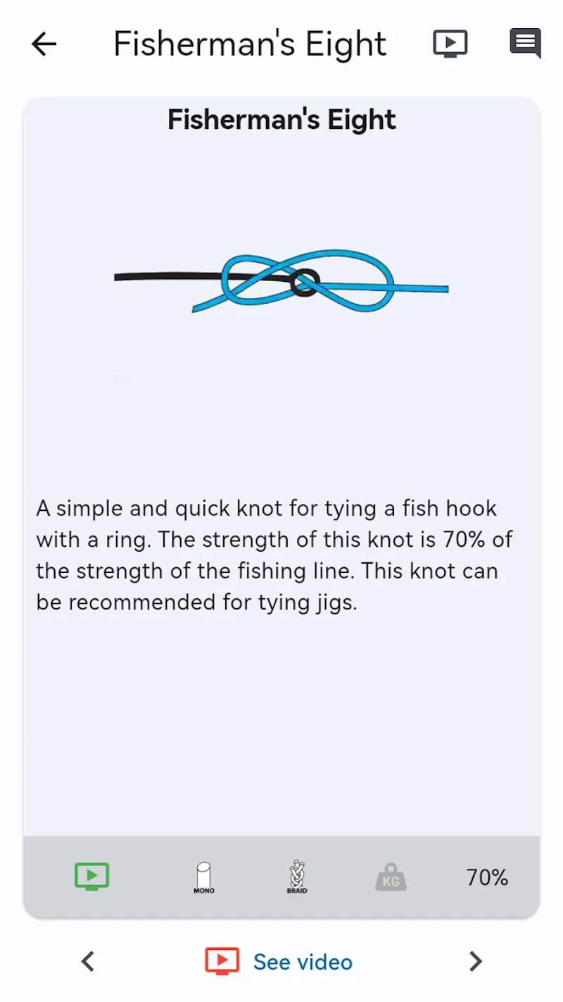 Fishing Knots Premium mmendations: The application provides objective recommendations for suitable fishing lines to help users determine the correct purpose of use and the right knot.OFFLINE ACCESS & USER-FRIENDLY DESIGNThe application is suitable for many different users and the interface is newly added to meet modern needs. The application gives you many specialized analysis features, with the most unique 3D diagram system. Not only that, you can choose additional interface templates to serve long-term use needs.Offline Availability: The application work