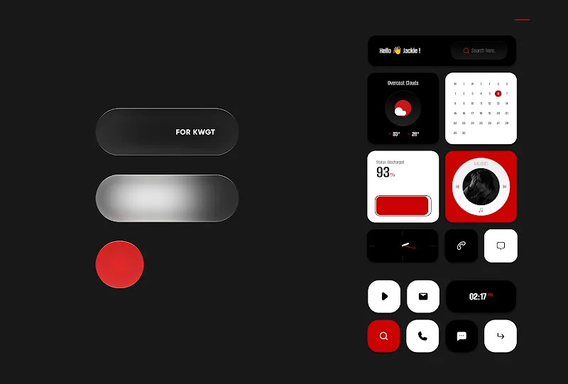 A professional KWGT widget pack designed for a clean and aesthetic look.Flux for KWGTA Widget pack based on a modern #minimal and #aesthetic style for your phone screen.Flux for KWGT is designed with a clean black, white, and red theme to make your homescreen look elegant, sharp, and professional. With 50+ widgets on initial release and 10 beautiful monochromatic wallpapers