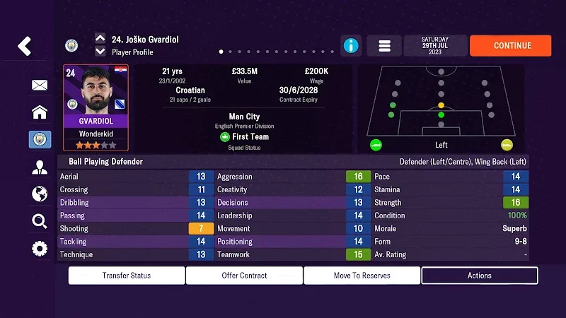 Football Manager Mobile 2024 Premium characteristics of the tactic also need to be prioritized when they will use that tactic to attack or defend against other teams. Therefore, players can discover possible combinations to face other teams, and of course, you will be able to apply your knowledge about football and your team. You can make timely and completely accurate choices to bring your team to a winning position.More reputation: The game will allow you to become an unknown or talented trainer in the market.Attract more players: This can be considered an extremely important indicator because it can bring many benefits to you and your teammates.Expanded Club: From your choices, your team will become the strongest team.EFFORTLESS ONBOARDINGWhat could be better than being not only an observer but also a competitor of famous football teams in the world? The season starts, and there will be many things that you need to pay attention to because matches in this game are not decided by skill factors but by tactical factors. Even if you are skilled in controlling the character, in this game, it is meaningless because the players will compete automatically. So, your job can only be to observe what is going on, and you will be happy if your strategy works. If the result turns out to