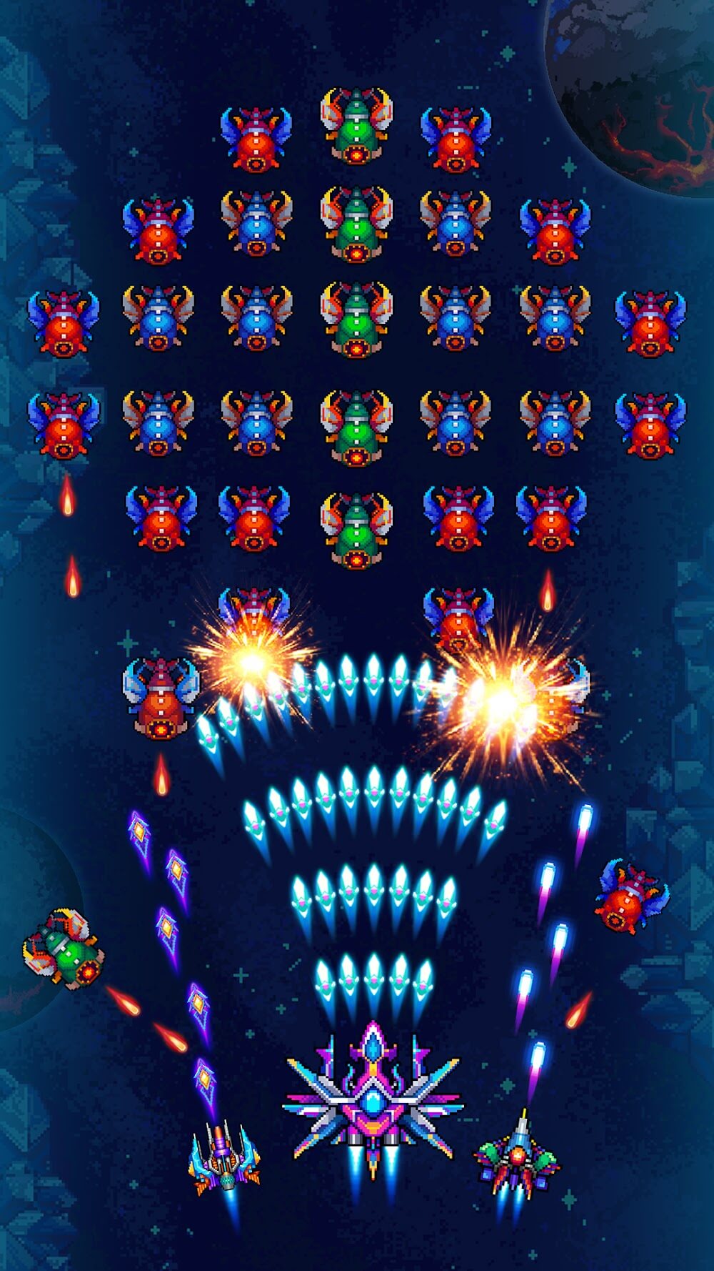 Retro arcade space shooter, Galaxiga Mod APK combines nostalgic 80s vibes with modern multiplayer battles; pixel-perfect galactic adventure.Galaxiga Arcade Shooting Game brings players back to completely familiar experiences when taking them to battles in space. Enemy spaceships of different colors will constantly attack you, and the reward for destroying them is weapon technology that helps you become stronger. In particular, countless spaceships with different rarities are on display and waiting for you to unlock them to overcome much gameplay with bosses. At the same time, you will never fight alone but can attach other additional warships.RETRO ARCADE STYLEGalaxiga Arcade Shooting Game attracts you into battles with enemies in different galaxies, and there is only one outcome: you are destroyed, or they are destroyed. You will control your warship to move freely in a certain area and avoid attacks from them. At the same time, space technology evolves very quickl