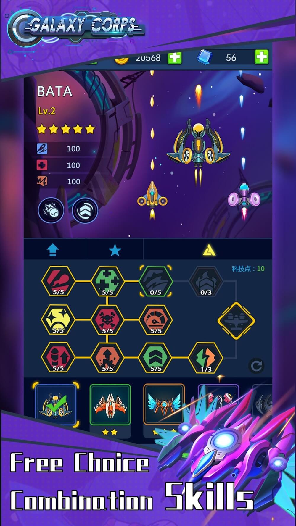Galaxy Corps Mod Apk sist. Only you can take on the mission of the guardian of the galaxy and return peace to humanity. You will form your Galaxy legion and prepare for future wars.Galaxy Corps will take you to fierce battles in outer space and only you in the spaceship. You have to face a series of cruel enemies alone, so you can only hold the steering wheel and aim the gun at the target. However, your enemies are many, and they are all modern spacecraft with advanced weapons, so it is difficu