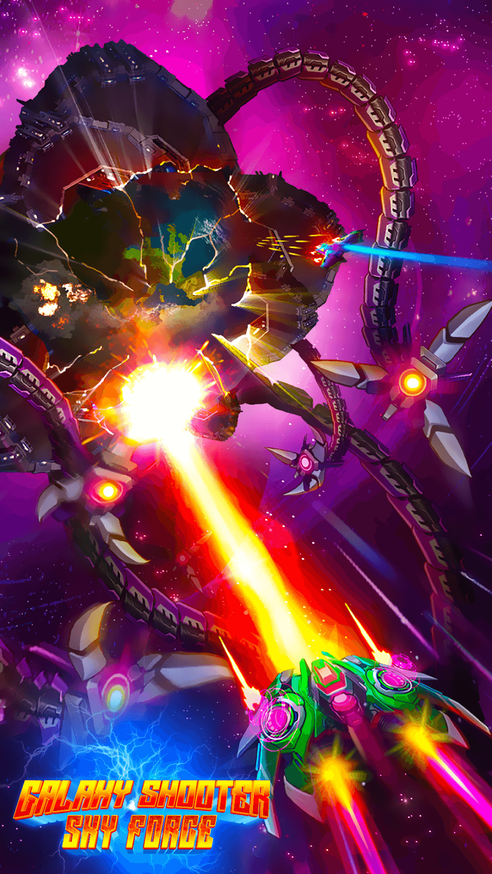 Galaxy Shooter Sky Force apk-en lanet. To save the world, get on your spaceship and fight your enemies.OUTER SPACE CONFLICTAliens are depicted as pleasant individuals before their appearance. Being caught off guard, the humans launched a terrible attack with their fleet of spaceships. Aliens still want to rule the universe and will not ignore this planet. A conflict between aliens and humans has begun. It is your highest honor to protect everyone’s safety. You and humanity will only be safe if all enemy spaceships are destroyed. Send your spaceship to the front lines to destroy the invaders.