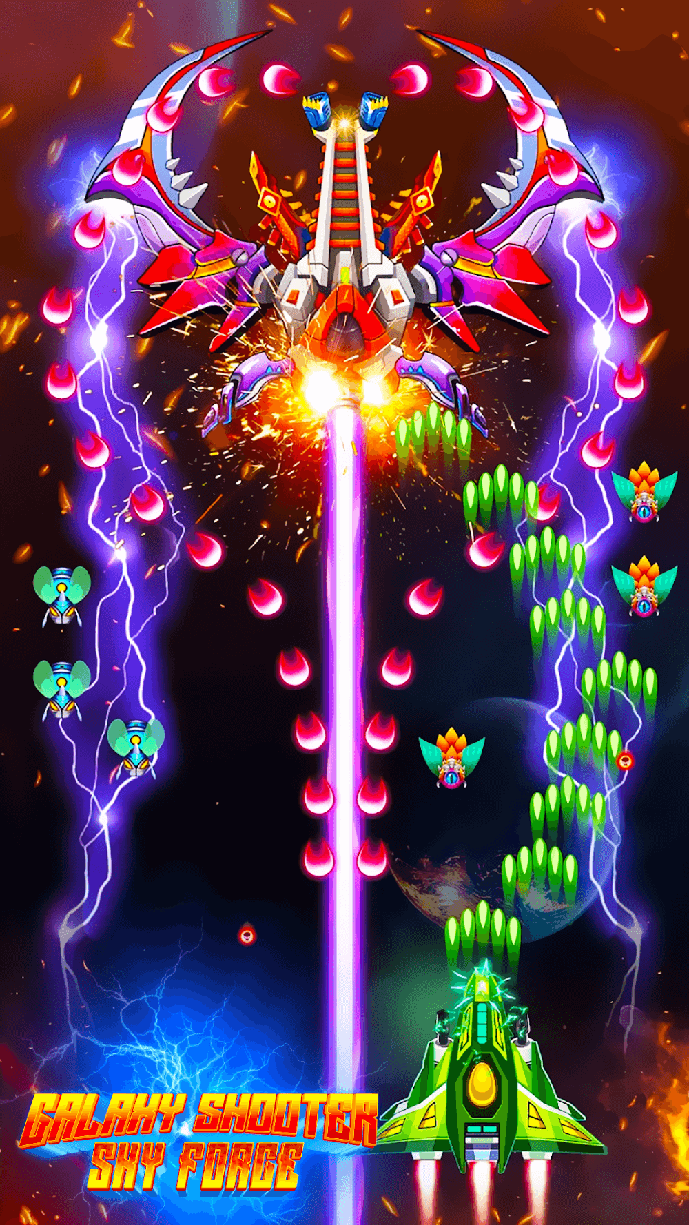 Galaxy Shooter Sky Force Premium want to land on Earth once completely, and you must use your ship to stop them.DANGEROUS ENEMYAliens are not as benevolent as humans believe, as shown in their actions. They planned the invasion and sent a massive fleet of warships to the planet’s equator. However, before hitting Earth, their cannons destroyed several planets. Humans have superior technology and are forced to conquer this environment completely. You have to defend the territory where you were born from the evil enemies that have attacked. Any aliens alive would pose a serious threat to the p
