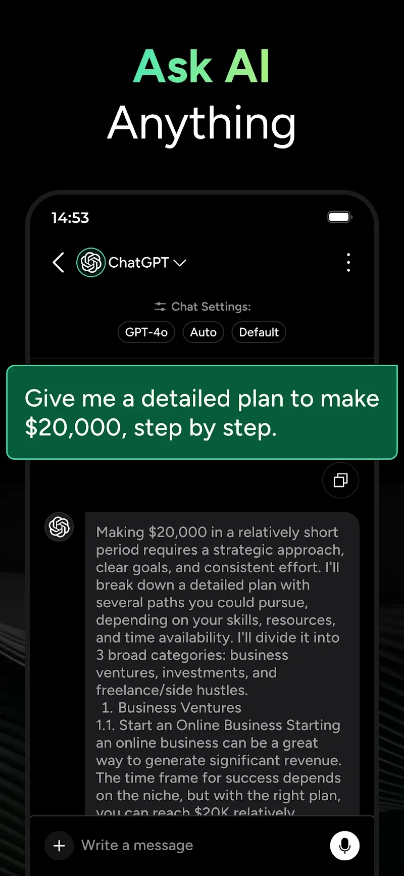 Chatbot AI Assistant – Genie has become an indispensable tool for many users with a variety of different features. Over time, AI technologies will be born and quickly integrated into the system. Taking advantage of the potential of AI becomes extremely simple with just a few steps.ADVANCED AI ASSISTANCEUsers can fully explore the potential of AI when using the application in the way they want. In particular, the diversity of models is an attractive factor for each person when giving the first commands.Multi-Model Intelligence: In addition to current AI technologies, the application also supports a newly launched technology called Deepseek. From there, you can take the time to explore its advantages and make comparisons.Context-Aware Replies: Receiving responses is often decided based on the context that the application receives. So, you need to find a way to provide a variety of relevant information and get the most accurate results.Round-the-Clock Help: If you are having any problems, the system can start operating immediately before your request.USER-FRIENDLY EXPERIENCEThe friendly interface is completely useful for many people when they first use it, and they do not encounter any difficulties. At the same time, quick interaction in the system often leads to interesting conversations over time.Easy Navigation: After adding commands to the system, you only need to wait a few seconds for the results to appear immediately. This is completely understandable and helps each person to maintain the conversation until bored.Versatile Uses: Instead of completing normal tasks, users can save time through simple commands. You do not need to spend time typing boring email content to colleagues.Constantly Evolving: Every early stage information will have some errors but your choices will help improve the results. Through some cases, useful information helps the system become stronger.