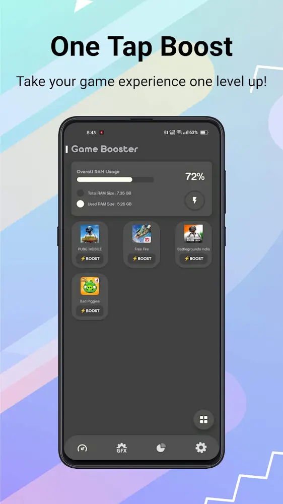 GFX Tool Pro Mod APK: Optimizing gaming performance, enhancing graphics, offering vast compatibility, and breaking barriers globally.GFX Tool Pro for BGMI is an application that unlocks the GFX potential of some games when it can help users unlock things that are not available or have reduced image quality. This helps users play the game more beautifully or more appropriately if they are games with heavy configuration. In particular, besides the basic configuration, users can completely unlock additional advanced settings suitable for each specific situation while playing the game. In addition, you can also freely experience and know when to stop, especially when your device shows signs of heating up.CUSTOMIZABLE GRAPHICS SETTINGSGFX Tool Pro for BGMI gives users features that can help them have the absolutely smoothest gaming experience. This comes from the ability to control elements related to GFX, and from there, users can completely adapt the game to their devices. One point that users also need to pay attention to is that the settings to suit your device will often not be integrated by the original game, so using a third-party application is absolutely necessary. In particular, adjusting GFX not only increases but can also decrease to help any device be able to play games like PUBG.Absolute control: Things that ofte