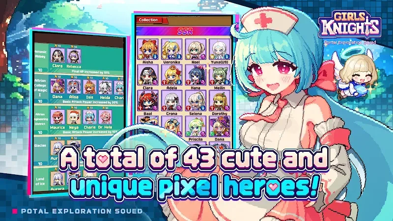 Girls Knights Squad Rpg Mod Apk y attractive.Unique Pixel Art Style: The game has a unique pixel art style, which gives a nostalgia and cuteness space. Players can simply feel the brightness and liveliness from every single frame, making an interesting visual that they can’t ignore.Detailed Character Design: Each character is designed in the most detailed way possible from costumes to expressions. Player will be definitely attracted by the diversity and style of each female knight which makes every battle more interesting and unique.Attractive Visual Elements: The striking images as well as fun elements help to raise the interest of