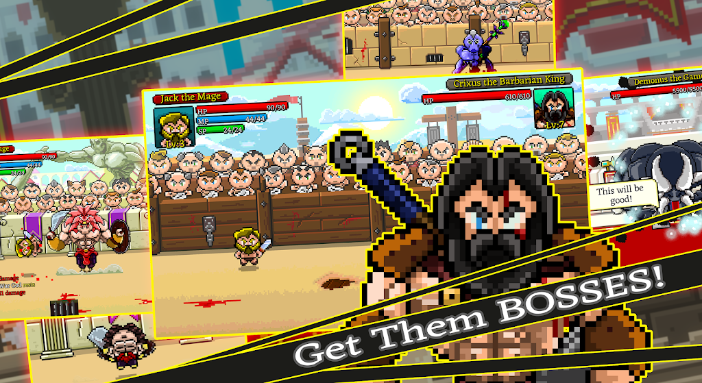 Gladiator Rising apk-en resents a unique challenge.GEAR UP FOR GLORYIn the brutal world of Gladiator Rising, a gladiator is only as good as their gear. Players can purchase, equip, and utilize a vast array of items in their quest for supremacy. From lethal swords to protective shields, the right equipment can make the difference between victory and defeat.A UNIQUE BLEND OF GENRESGladiator Rising stands out not just for its engaging gameplay but also for its seamless blend of rogue-like and turn-based RPG elements. This mix ensures that players are always encountering fresh challenges and employing new strategies. Coupled with its retro visuals, Gladiator Rising offers an experience that’s both nostalgic and refreshingly new.