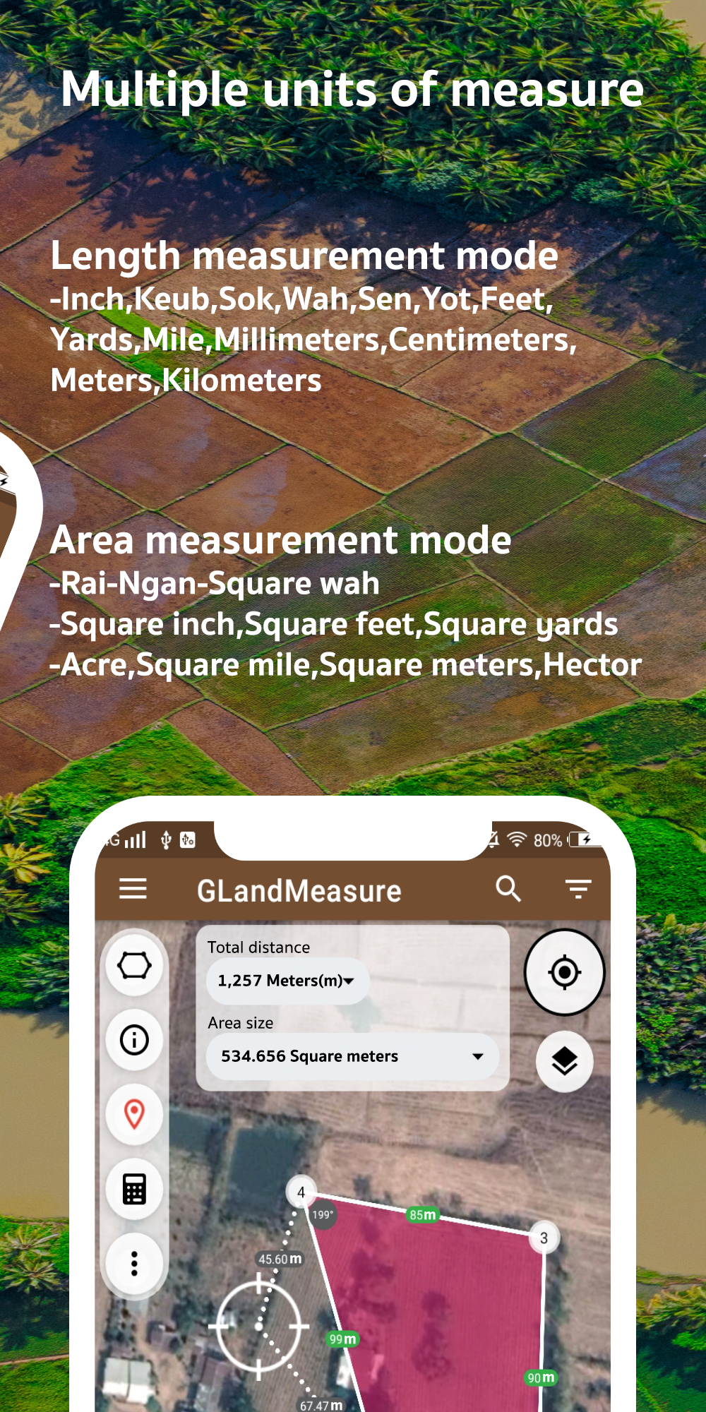 Area Measure Length Gps Gland 2 Mod Apk ut an end to the stress of currency conversions. A wide variety of length and area measurement units are available. Several units are available, ranging from the Thai wah and work to the English inch, foot, and mile and the metric millimeter, meter, and hectare.DATA CAN BE UPLOADED, SHARED, AND EXPORTEDStoring and exchanging your measurements is a breeze. The app caters to your needs, whether you want to save it on your phone for later use or broadcast it on social media sites like Facebook or Line. Coordinates can be exported to PDF, Excel, KML, and Geojson. Keeping tabs on your stats has never been less of a hassle. The app serves a diverse clientele, from farmers to real estate agents. This app will become indispensable if you operate in the real estate market and need to measure land or determine values. In addition, GLandMeasure may be