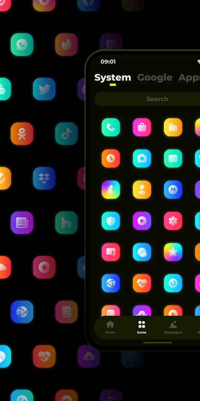 Glo Icon Pack Premium an choose, according to your own experience, to create a new interface for your device.CLOUD-BASED WALLPAPERSThe application supports providing you with quality wallpaper templates from which you can choose to highlight your device. At the same time, the application will also allow you to create your own unique wallpaper templates, such as uploading images and combining images to create new, more beautiful templates. The application supports saving the latest quality wallpaper templates and icons to meet the user’s update needs.Limitless