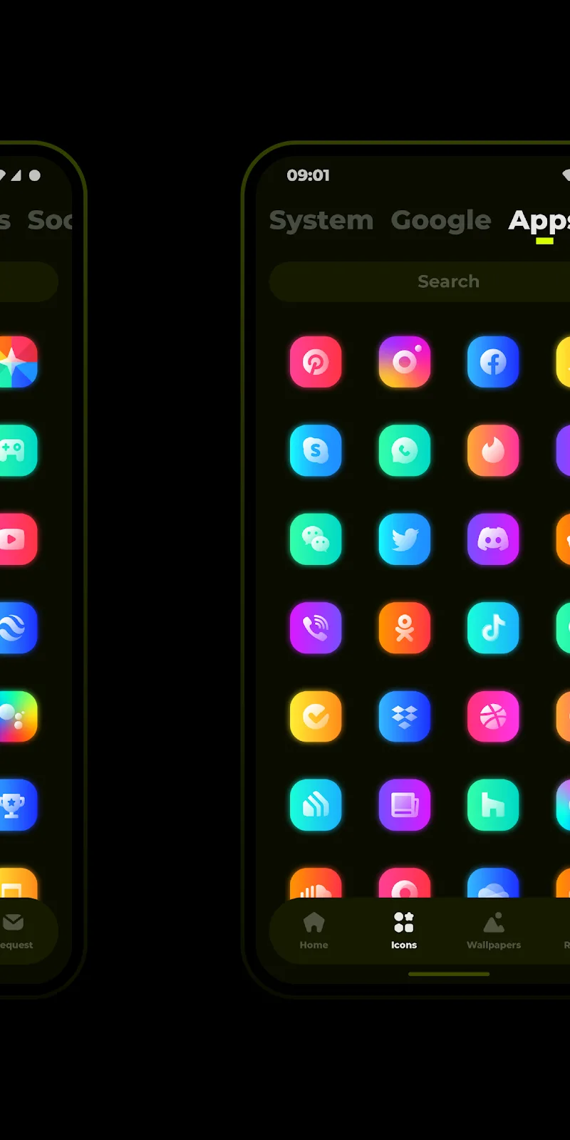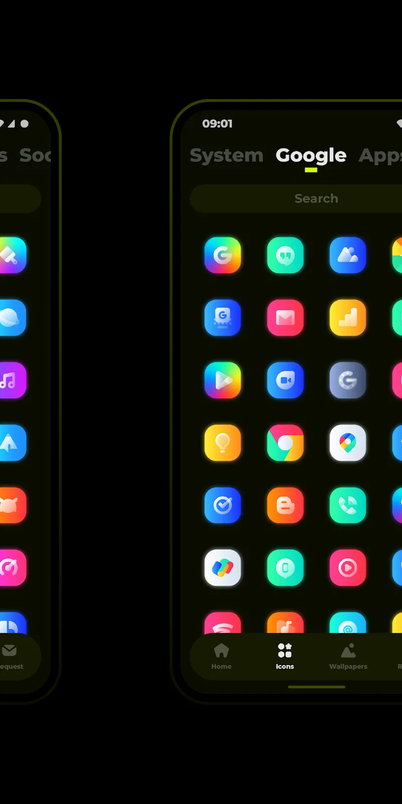 Glo Icon Pack Mod Apk rom which you can choose. Searching by voice or by keyword is convenient. The application has an additional feature editor for icons that you find unsuitable.Custom-designed icons: The application provides you with more than 4700 new icons for your device settings to renew the appearance and unique interface.Variety and style: Unique, new design style with many themes for you to choose from. At the same time, you can continuously update your favorite themes through automatic features.Regular updates: New icon templates are added, and you c