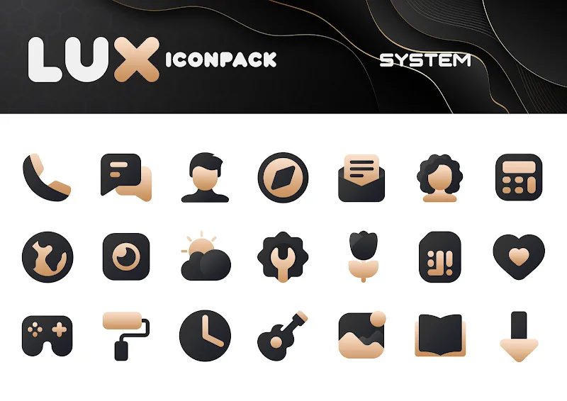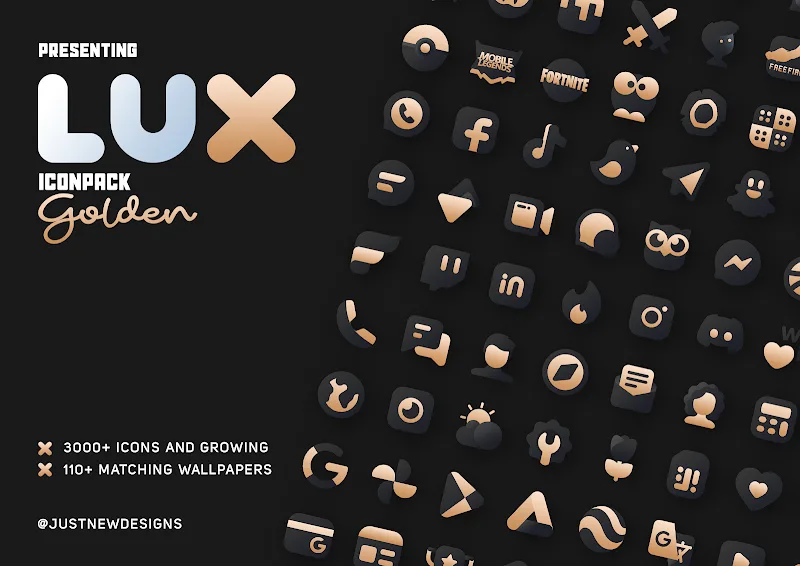 The perfect combination of two high-contrast colors, matte black and gold, will make the icon pack in Gold IconPack: LuXGold stand out. Users will feel the elegance and modernity of this special icon pack. Each icon and wallpaper in the pack has a mysterious beauty.VAST ICON COLLECTIONUsers will own a unique icon pack. The available icon templates in the pack are all beautiful and new. The application will continue to design and provide new, more unique icon templates. Users can also choose to add more alternative icon templates.Over 3200 Icons: The icon pack contains over 3200 avail