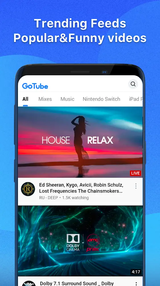 GoTube lets you entertain yourself with videos and songs across different platforms in an unstoppable experience. There is nothing stopping you but you, as you can set your own limits when using the application, or you can let it run until you get bored. At the same time, the vast amount of resources always have many ways to use, from entertainment to work, and does not cause users to be distracted. Choose a suitable video and continue the unfinished business, and you will definitely know how to use this application in many different ways.ENDLESS MUSIC STREAMINGGoTube can become an impressive music and video viewing experience when it can meet most users’ needs. Its platform is no different from current video viewing platforms and you can update hot videos and experience it for free. In particular, even though it’s free, maximum quality is still added and a video with beautiful images and vivid sound is always a perfect balance for you. Both visual and auditory satisfaction is always a comfortable feeling that anyone can achieve.Unlimited access: If it’s a song inside your library, you can access it freely.Freely create playlists: Creating playlists helps you search and listen to music faster.Discover lots of new content: Information about hot artists is often updated regularly so you can refresh your song list.OPTIMIZED FOR MOBILEIn general, some users will have questions when using GoTube: will they be bothered when listening or watching the content they like? The answer is absolutely not, and you can rest assured that every experience, from start to finish, is always the most fulfilling one for you. There is nothing that can interrupt, and if there is, the application will help you prevent it so that everything that climaxes must reach its climax in any case. Also, the app will always run if you tell it to, and don’t forget to try setting a limit on it at night.Make the most of your device’s potential: Each device has different characteristics that the application will pay attention to.Unlimited offline viewing: You can prepare content to watch anytime you want.Save data: If you want to watch videos and are using 4G, you should reduce the video quality.CLOSED CAPTIONINGWatching videos and listening to music at night is often an understandable experience when you just want to lie down and catch up on your favorite content to help you sleep better. But in many cases, you often fall asleep while the song is still in a loop and let it run until it runs out of battery. So, to solve this problem, the application allows you to set a limit during the listening process, and when that point is reached, the application will run. This not only saves energy but also makes you have the habit of sleeping early because sometimes you can stay up very late just for a long video series.View content clearly: Content appears with subtitles to facilitate viewing.Can sing along if needed: If you are watching a music video, singing along with the lyrics is understandable.Multiple language support: Lyrics will change based on the region and language you select.SLEEP TIMERIt can be said that everything is always complete and suitable for any context, from resting to working. If your tablet is powerful enough, you can both edit documents and update extremely interesting podcasts. The two applications run side by side, and GoTube can switch back to pop-up mode to float to different locations. Your working experience is always convenient when it is similar to when you use a laptop. From there, going to work becomes more convenient and productive, and you do not have to carry too many heavy and uncomfortable things.Set limits: If you don’t want your device to consume a lot of battery, you must set the app’s shutdown time.Avoid falling asleep: Falling asleep is often a phenomenon that often occurs while listening to some gentle music.Continue watching: By interrupting at the right time, it is easy to review abandoned programs.
