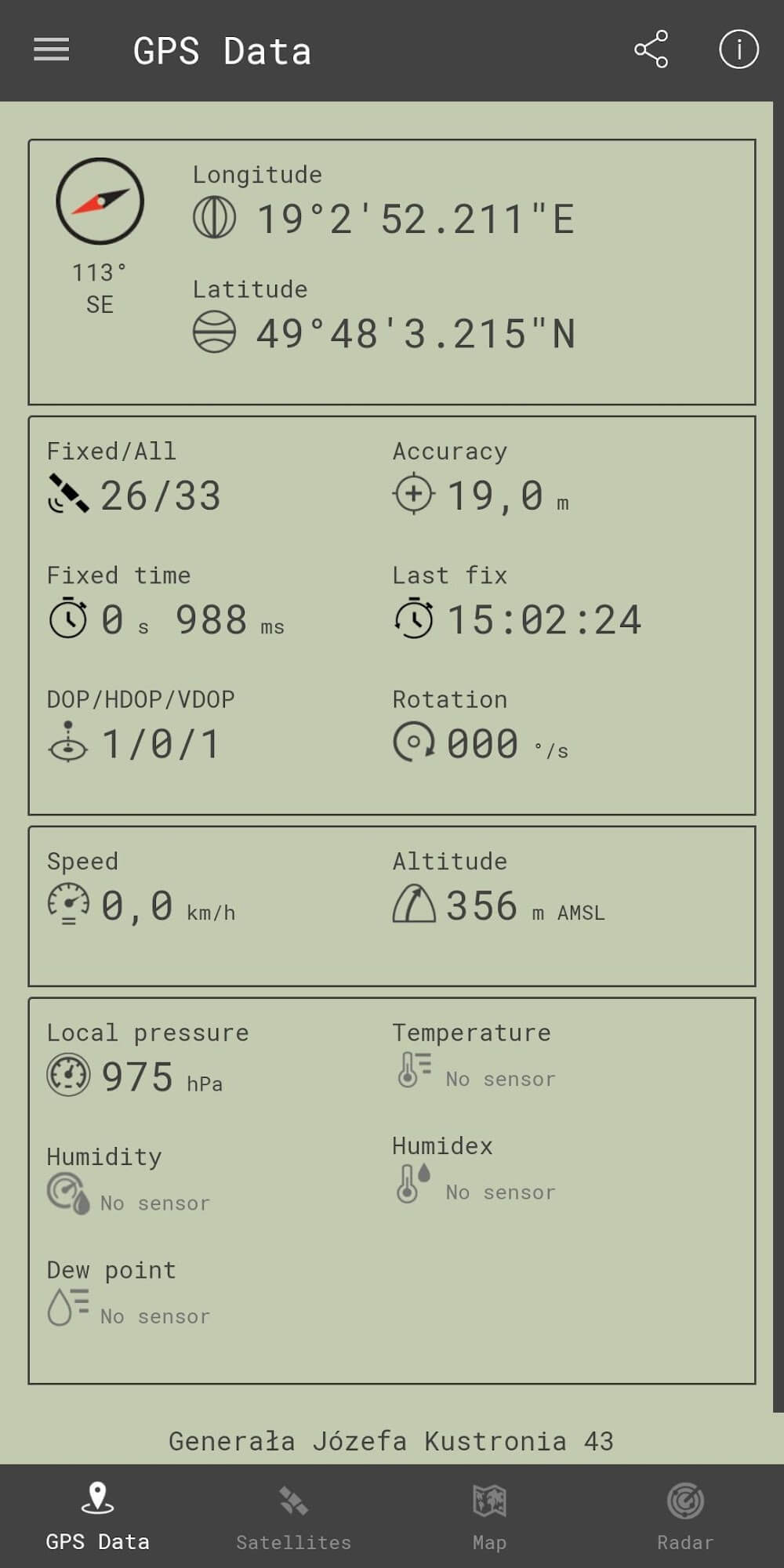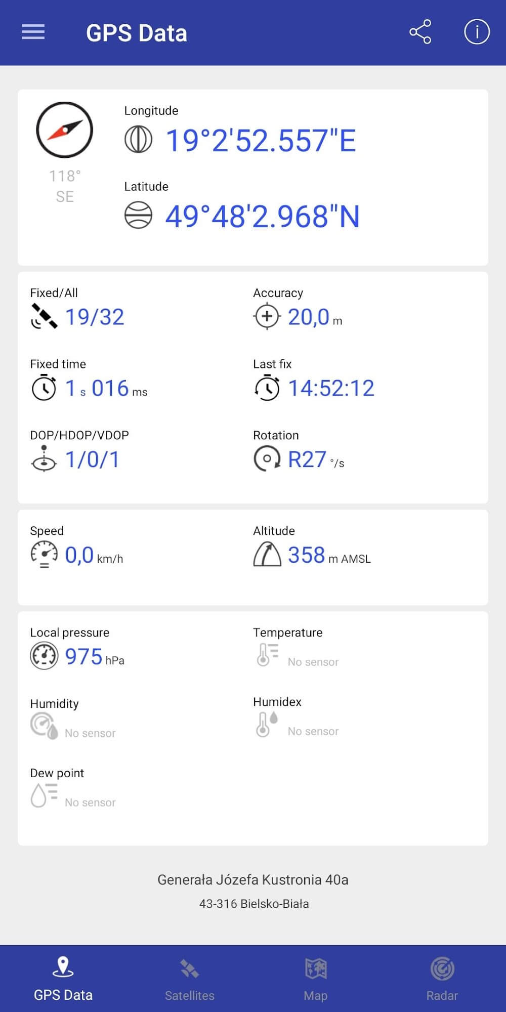 Gps Data Premium the location by coordinates or Google Map link is easy. Minor bugs fixed, and stability improvement. And mew exciting color styles like Military and Blue. Added Portuguese and Danish translations in this app. And radar can enter values in degrees like Decimal Degrees or Degrees, Minutes, and Seconds.Using this GPS Information & Coordinates Data app, you often have a chance to play some sports like mountaineering, journey, e