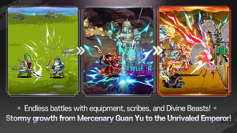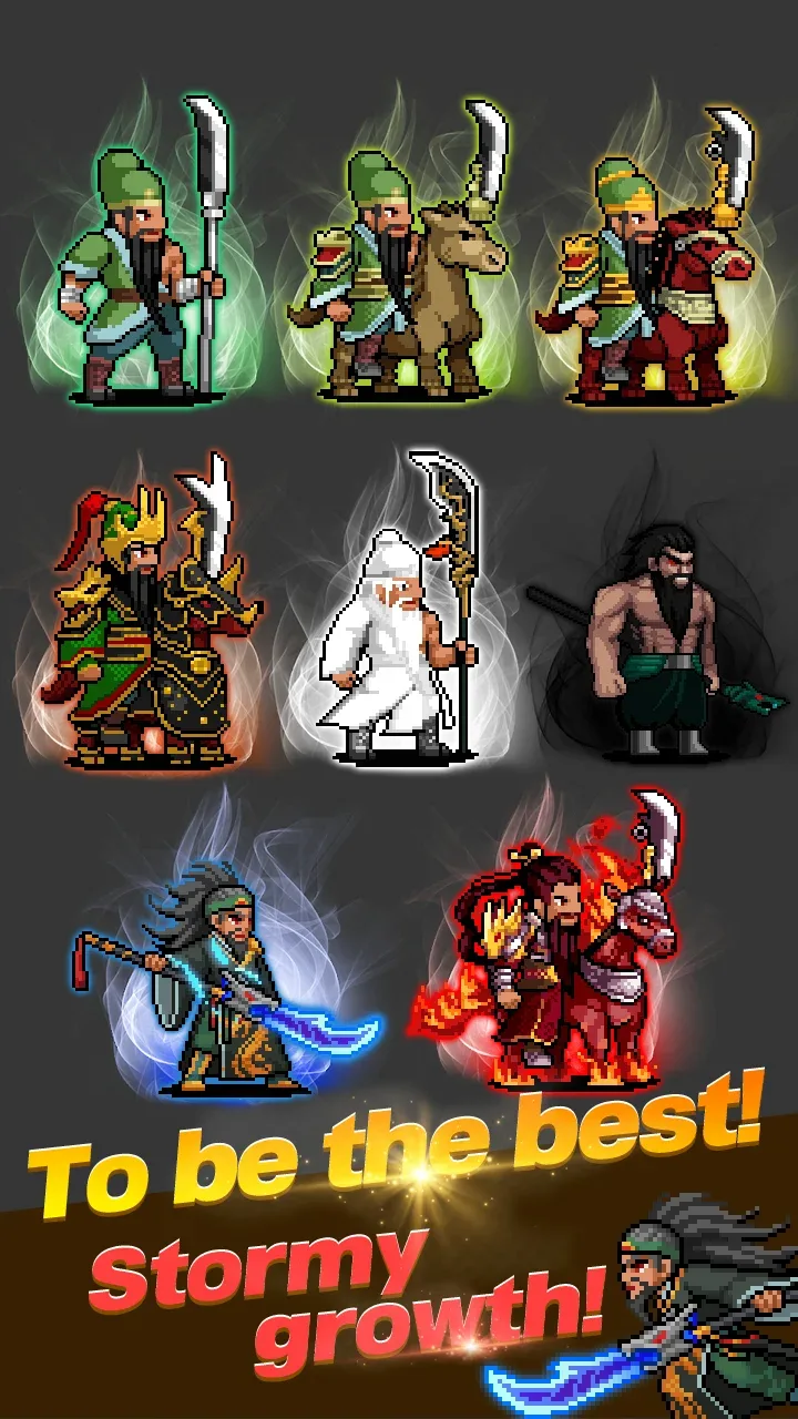 Guanyu Idle Premium animation and effect series. The system has truly succeeded in bringing the Three Kingdoms to real life.COLLECT OVER 100 GENERALS AND WEAPONSThe journey to conquer the legendary peak requires players to complete a series of Three Kingdoms action missions. Weapons and hundreds of generals are the best equipment you own. Each player can expand and develop their general collection to fight more leisurely.Unique Team Strategy: You will start by building a unique team by strategically collecting different generals and weapons. Each winning match will bring players a few new and extremely unique generals and weapons. Players ne