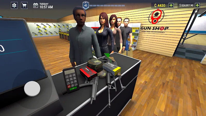Gun Shop Simulator 3d Shooting Premium ustomer interaction smooth movement is experienced. Optimized movement and action effects make the game more interesting.DIVERSE RANGE OF WEAPONSThe game emphasizes not only selling weapons but also exploring and owning various kinds of guns. Such a variety of weapons will create many chances for you to experiment and refine your business tactics.Variety of Firearms: The game offers an opportunity to encounter numerous varieties of guns from well-known brands. There is everything, including pistols and rifles, which will