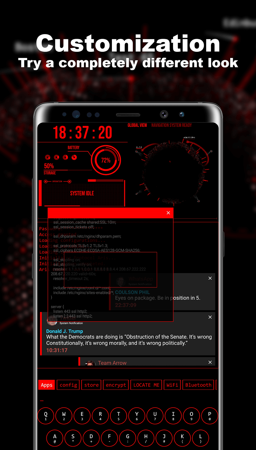 Hacker Theme Launcher Premium ct keywords of the content they want to access. The application will keep the options available in the control panel. Here, the user is allowed to interact with previously displayed notifications. In addition, the ability to temporarily lock any application will also make the process of resetting your device more enjoyable.To completely replace the old launcher’s interface, Hacker Theme Launcher will provide new options for users to redesign the interface in the style of a professional hacker. The applied wallpapers will b