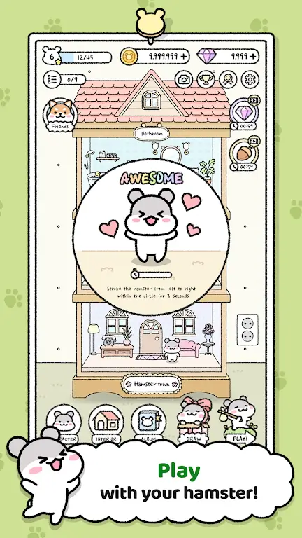 Hamster Town Premium ans to an end. They are an end in themselves. Observing the hamsters going about their day, playing with them, and taking care of them is a joy unto itself. It’s like owning a virtual pet, only cuter and without the clean-up. This captivating game serves as a source of relaxation and entertainment, offering therapeutic benefits and a great escape from the everyday hustle and bustle.EXPANDING AND DECORATING: CREATIVITY UNLEASHEDThe joy of Hamster Town extends beyond puzzle-solving. The stars you earn from acing the puzzles go into building and expanding your hamster house. Unleash your inner architect, designing and decorating your hamster habitat. The creativity doesn’t stop there, as you get to invite a plethora of animal friends, creating a vibrant and lively ecosystem.SWEET REWARDS AND PLAYTIME: NOT JUST AN
