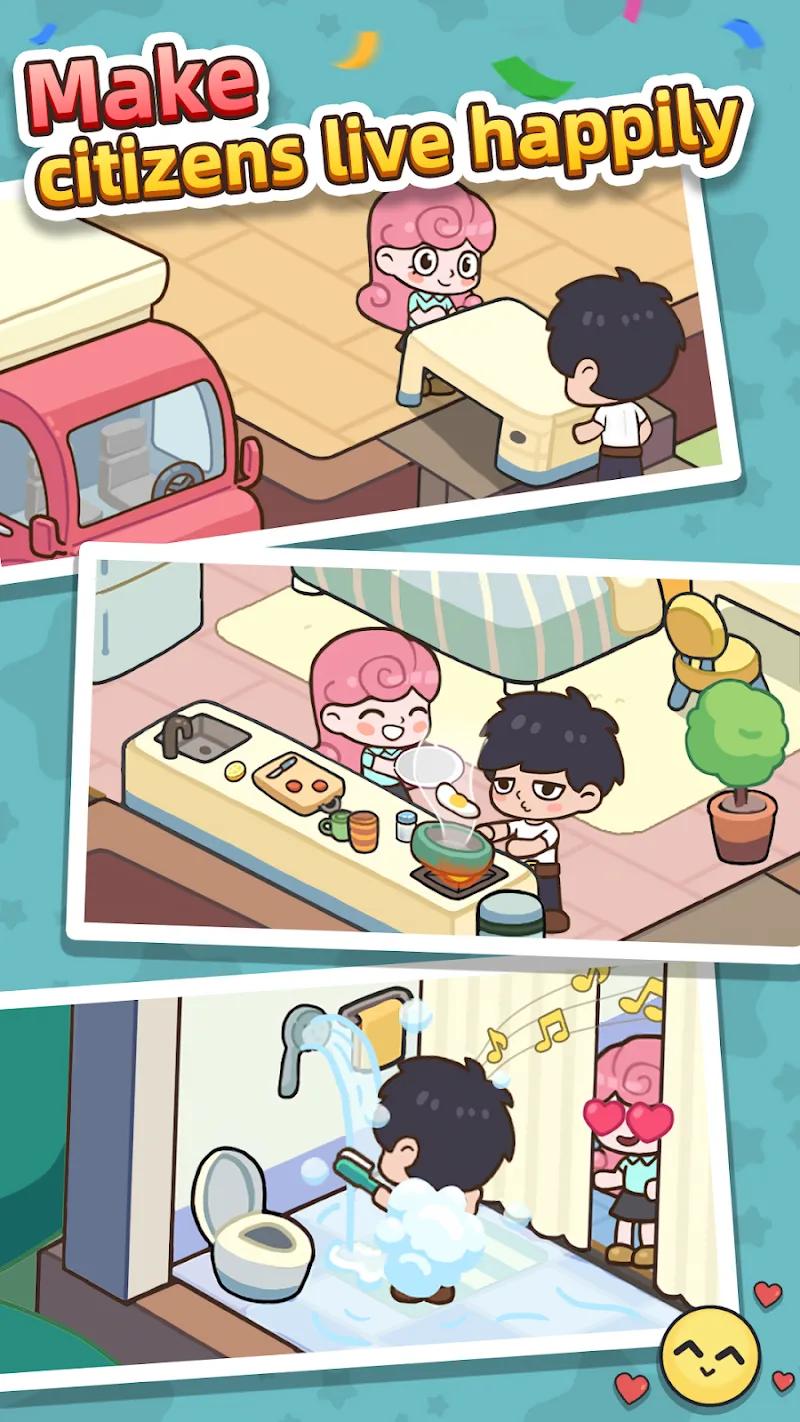 Happy Citizens Mod Apk mate goal is to make these residents achieve the happiness they always desire.CREATIVE CITY BUILDINGIn this game, you build your city according to your own creativity. You can design and build your city according to your own style and taste without any restrictions.Strategic Planning: Build everything in this city by yourself, from facilities to roads to the surrounding scenery; customize your city to your taste, and make it more unique and stylish.Building Diversity: To own new scenery and b